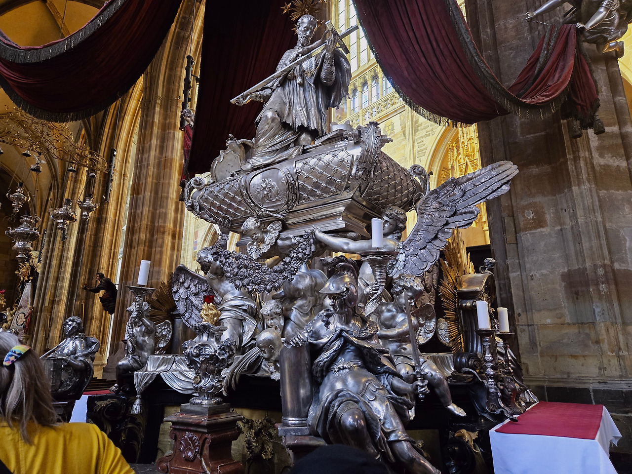 그러나 이 성당의 진짜 주인공은 프라하의 수호 성인인 성 요한 네포무크 신부였다. 성당 벽면의 프레스코화와 2.3톤의 순은으로 만든 그의 관과 조각상, 그리고 잘린 혀 모형을 든 천사상은 그를 향한 체코인의 깊은 존경심을 보여주었다.