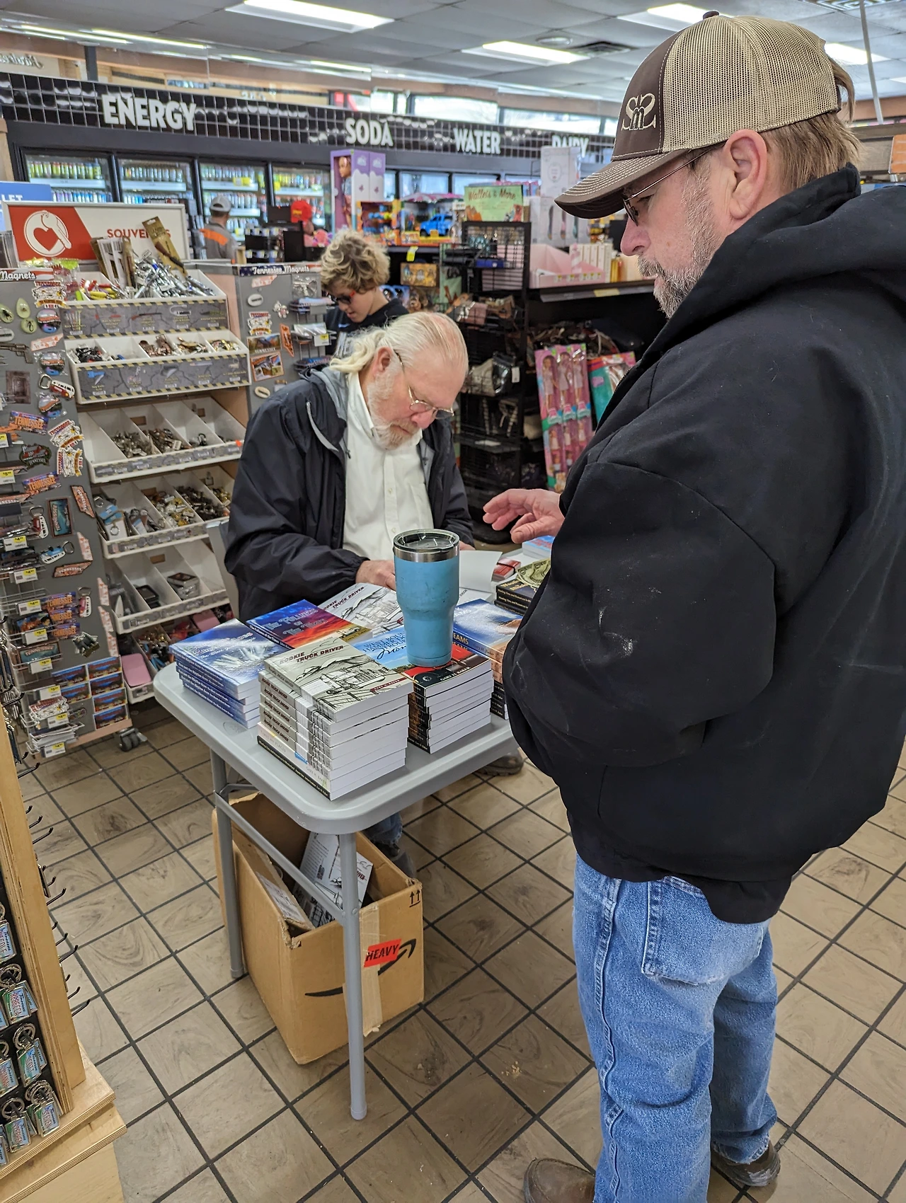 그는 27달러에 책을 팔았다. 수익금 중 일부는 아동을 위한 기금으로 쓰인단다. 아마존에서 사면 더 싸지만, 좋은 목적으로 쓰이고 저자 사인도 받을 겸 책 한 권을 사기로 했다. 개리에게 추천해 달랬더니 내 취향을 묻는다. 특별한 취향은 없지만 요즘은 SiFi를 즐겨 읽는다고 했더니, 그의 세 번째 소설인 Truck Dreams를 추천했다. 그는 첫 소설 이후 최근작까지 15년을 꾸준히 써 왔다. 첫 작품에 등장한 인물이 여러 작품을 거쳐 최근작에도 등장한다고 했다. 그의 책은 인쇄 상태나 제본 상태가 저렴했다. 자가 출판을 하느라 비용을 적게 들인 티가 났다. 그의 책은 아마존에서도 파는데 판매 순위가 매우 낮았다. 소설 집필만으로 생계가 해결될 것 같지 않았다.