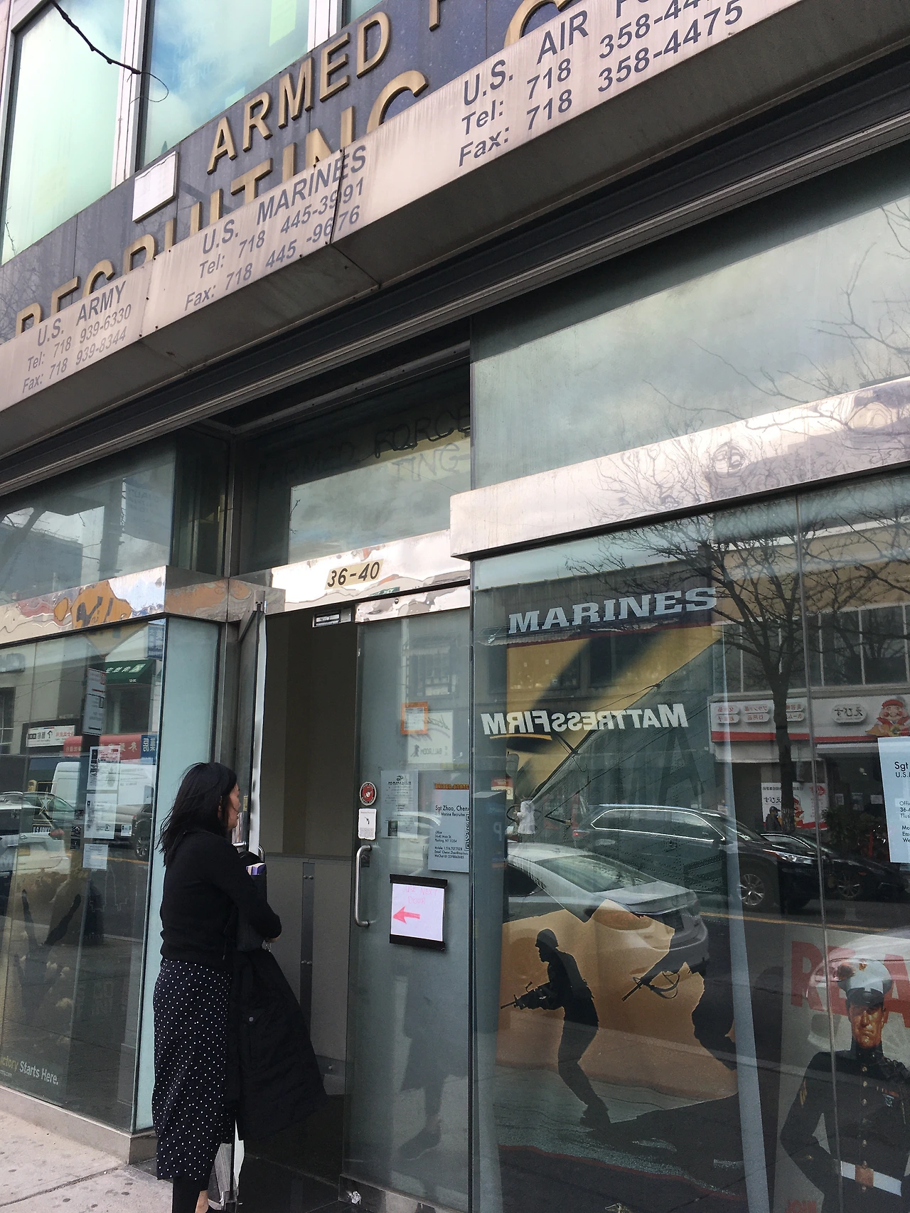 딸 아이를 데리고 아내와 함께 플러싱 메인스트릿에 있는 모병 사무소에 갔다. 젊고 잘 생긴 중국계 모병관을 만났다. 딸 아이는 함께 지원했던 친구가 신분 문제로 중도 탈락하자 해병대에 흥미를 잃었다. 한 달 전쯤 그만두려고 했는데 모병관의 언변에 말려 계속 다니기로 했다. 딸 아이의 의사를 확인한 후 오늘 담판을 짓기 위해 갔다. 긴 시간 대화 후 입대 지원을 취소하기로 했다. 구두 의사를 밝혔고 실제 서류가 처리되는 데는 몇 달이 걸릴 모양이다. 미국에서 군대를 나오면 혜택이 많다. 가능성을 완전히 닫지는 않았다. 다만, 딸 아이가 100% 확신이 서지 않은 상태에서 내린 결정의 진행은 바람직하지 않다. 아내는 이 문제가 신경 쓰여 그동안 많은 스트레스를 받았다.