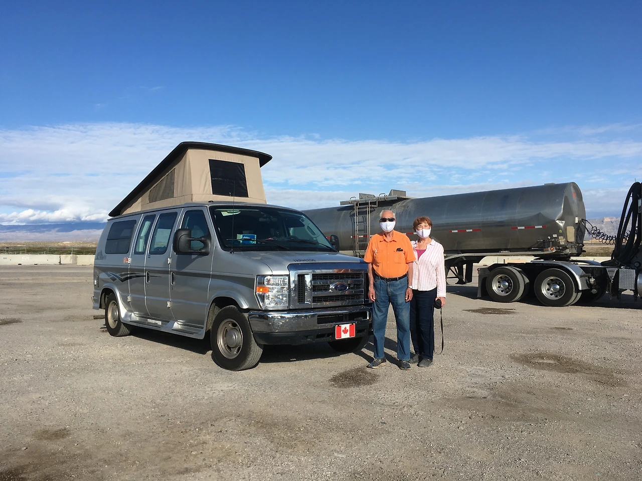 아침 식사를 위해 사막의 한적한 트럭스탑에 들렀다. 80대로 보이는 노부부가 옆에 주차한 밴으로 걸어왔다. 가까이 오더니 할아버지가 마스크를 꺼내썼다. 실내에서도 끼지 않던 마스크를 왜 차에 와서 쓰지? 할아버지가 차량 앞에서 포즈를 취했다. 할머니가 똑딱이 디카로 촬영했다. 다음엔 서로 바꿔서 촬영했다. 눈치를 보니 사진을 찍어줬으면 하는 것 같아서 내려서 다가갔다. 사진 찍어주겠다고 하니 기뻐했다. 나온 지 십년은 넘은 것 같은 구형 디카다. 스마트폰 화질이 훨씬 좋을 것이다. 두 사람을 보니 폴더폰을 사용할 것 같다.