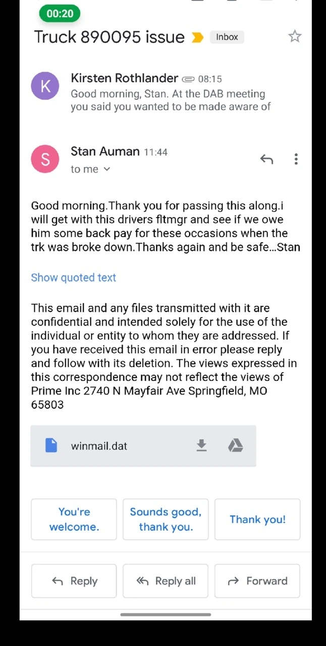 오늘 새벽 일찍 일어나 제니 씨에게 대강의 상황을 적어 보냈다. 제니 씨는 영어로 번역해 크리스텐이라는 사람에게 보냈다. 그녀는 DBA (Driver Advisory Board) 위원이었다. 프라임에는 노조가 없지만 DBA가 비슷한 역할을 한다. DBA 위원은 추천을 받아 선거로 뽑는다고 들었다. 제니 씨에 의하면 크리스텐도 오지랖이 넓어 잘 나서는 사람이다. 그녀는 즉각 브라이언의 상급자인 스탠에게 연락을 취했고, 스탠은 알아보고 조치를 취하겠다고 했다.