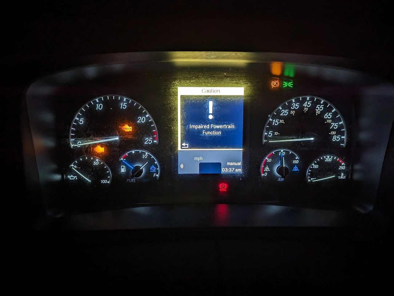 새벽 2시에 일어나 준비하고 출발했다. 휴게소에서 10분 휴식을 제외하면 논스탑으로 배달처까지 달렸다. 도로 상태는 양호했지만, 스모키 마운틴을 넘는 코스는 험난했다. 바짝 긴장하고 운전했다. 오늘 아침 시동걸 때 Impaired Powertrain Function 에러가 떴기 때문이다. 에러 메시지는 잠시 후 사라졌지만, 지난 번 사고 나던 날도 그랬다. 무슨 징조인가 싶어 조심 조심 더 조심했다.