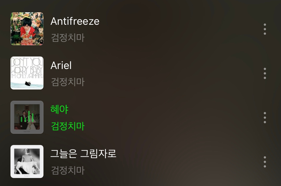 앨범이 나오면 보통 수록곡 전부를 들어보는 편이다. 예전엔 정말 정말 좋아하는 몇몇 아티스트들을 제외하곤 그냥 타이틀곡만 후딱 맛보고 플레이리스트에 남겨둘지 지울지 결정하는 과정을 반복했는데, 이제는 단 한 톨의 관심이라도 있는 이들의 신보라면 일단 다 들어본 후 마음을 건드리는 곡들을 선별하여 리스트를 꾸린다.