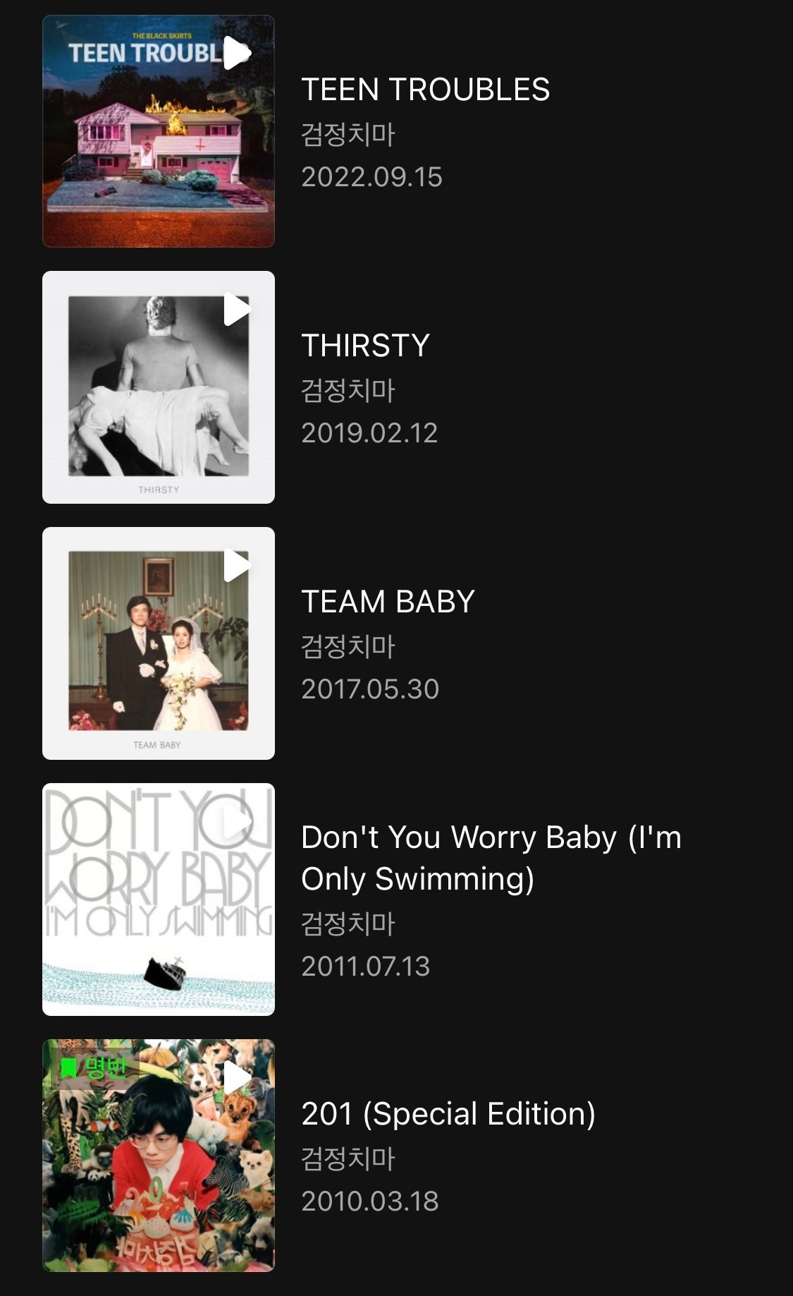 정규앨범별 최애곡들(아주 가-끔 바뀌기도 하는 건 비밀). <TEEN TROUBLES>는 아직도 한창 듣는 중이라 못 정했다.