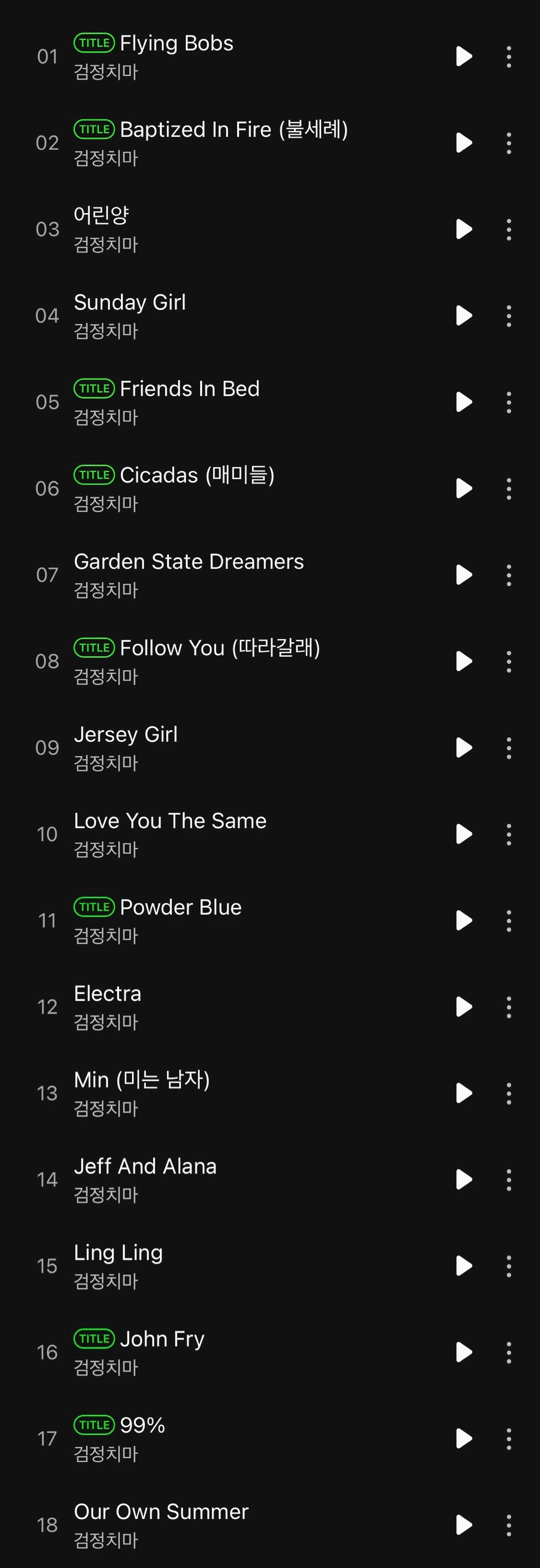 사실 검정치마의 앨범은 타이틀곡 딱지의 유무에 관계없이 전곡을 다 들을 수밖에 없는 특유의 기질 같은 게 있다. 이른바 ‘조휴일 오디오 아우라‘에 스며드는 팬심의 기본자세와 더불어, 전체 재생을 누르고 떠나는 가슴 뭉클한 망망대해의 여정은 도저히 거부할 수 없는 약속과 다름없다.