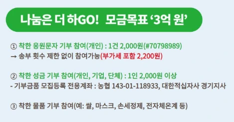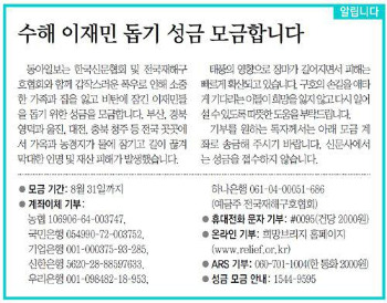 수해 이재민 돕기 기부 캠페인과 문자로 기부한 내용