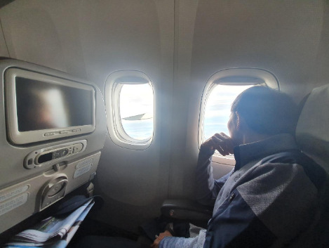 비행기에서는 일부러 아빠에게 창가 쪽 좌석을 드렸다. 아빠는 비행기는 타보았지만 창가에는 처음 앉아본다고 하였다. 마침 날씨가 맑아 비행기가 이륙하자 창문 밖에는 인천 앞바다의 넓은 광경이 펼쳐졌고, 아빠는 어린아이 같이 신기해하였다. 왜 진작 이렇게 해드리지 못했을까.. 기쁜 한편 미안한 마음도 들었다.