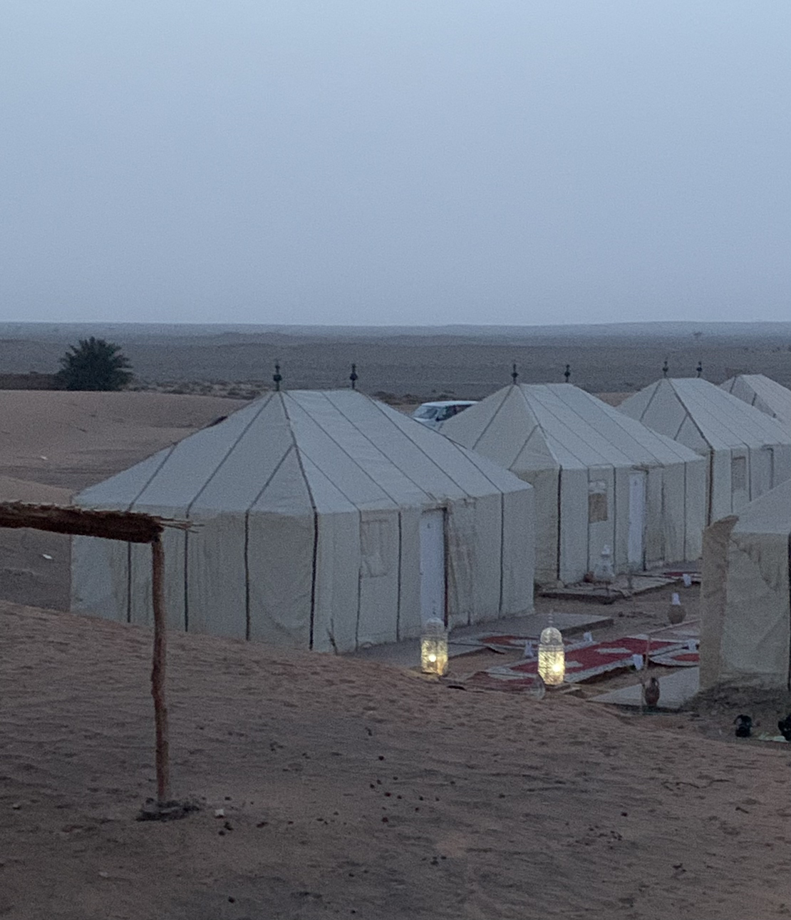 야간버스는 달리고 달려, 해가 막 뜨려고 하는 어스름한 새벽녘에 우리를 목적지에 내려주었다. 파리에서 미리 '핫산네 민박'이라는 사하라 사막 투어 및 숙박 업체를 예약했기에, 버스에서 내렸을 때에는 그곳에서 보내준 택시 기사님이 우리를 맞아주었다. 그곳에서 또 한 시간 정도를 차로 더 들어가야 드디어 사막이 나온다.