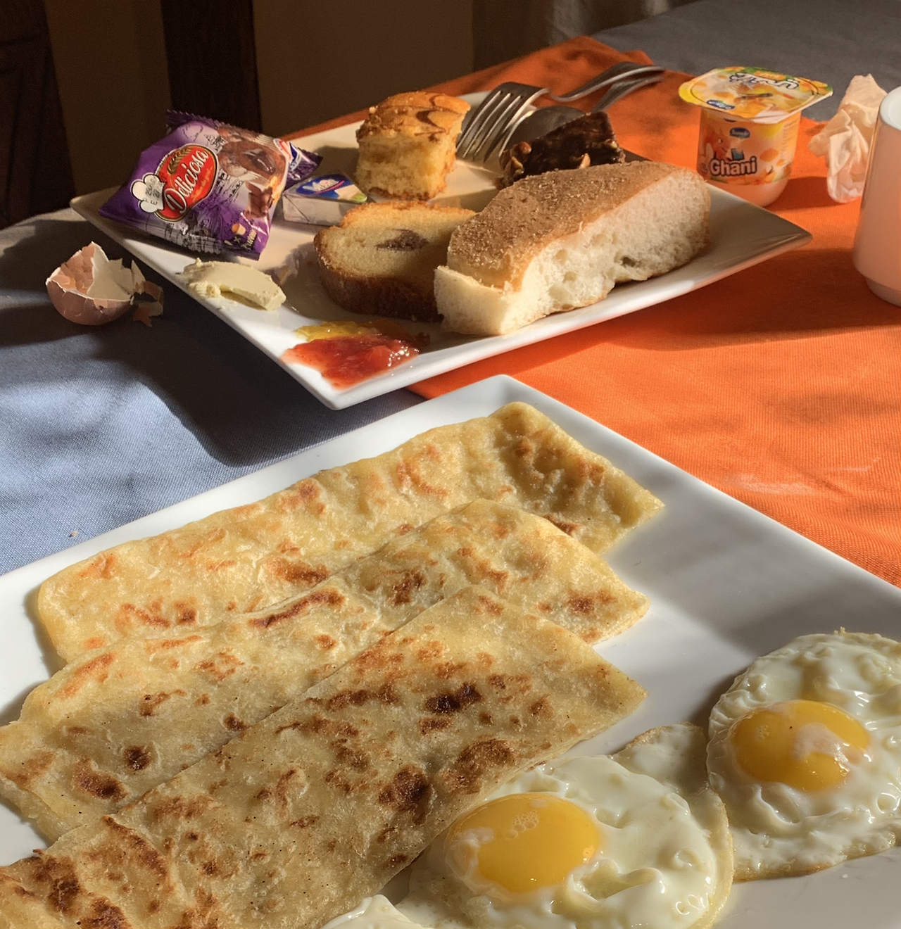로비에 있는 소파에 짐을 잠시 내려놓고 기다리니 사장님이 와서 아침을 먹으라고 했다. 요구르트와 계란프라이, 과일, 잼, 빵. 무엇보다도, 커피! 그래 나는 커피가 너무나도 절실했다. 야간버스에서 거의 잠을 자지 못해 간신히 눈을 뜨고 있었다. 따뜻한 음식이 주는 온기가 좋아서 와구 와구 먹었던 것 같다.