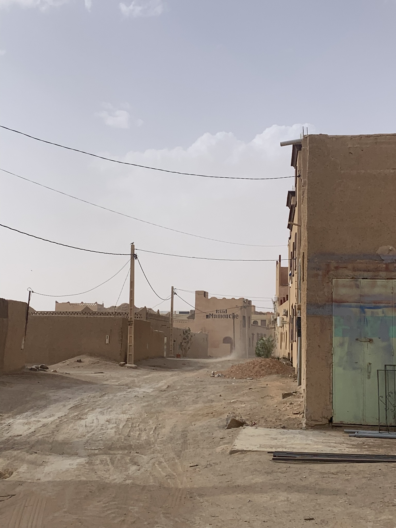 밤새 위스키와 담배의 낭만을 홀로 즐기다 늦게 잠들고 말았다. 아침에 눈을 뜨자마자 우리는 덤프트럭에 타서 어제 우리가 출발했던 숙소로 배달되었다. 그곳에서 피곤함에 눈도 제대로 못 뜬 채 아침을 먹었다. 각자의 시간을 가지며 잠시 쉬다가, 숙소가 있는 동네를 걸어서 구경하기로 했다. 사막의 초입에 위치한 그 동네에는 주로 사막을 여행하기 위해 온 사람들을 위한 식당들이 몇 개 위치해 있었다. 일상적으로 사람들이 거주하는 곳 같지는 않았다. 구글 지도로 미리 점심 먹을 식당을 찾아놓고 호기롭게 숙소를 나섰다. 숨이 턱 막히는 공기에 빠르게 말이 줄어들었고, 동네를 구경하겠다는 목표는 사라져 버렸다.