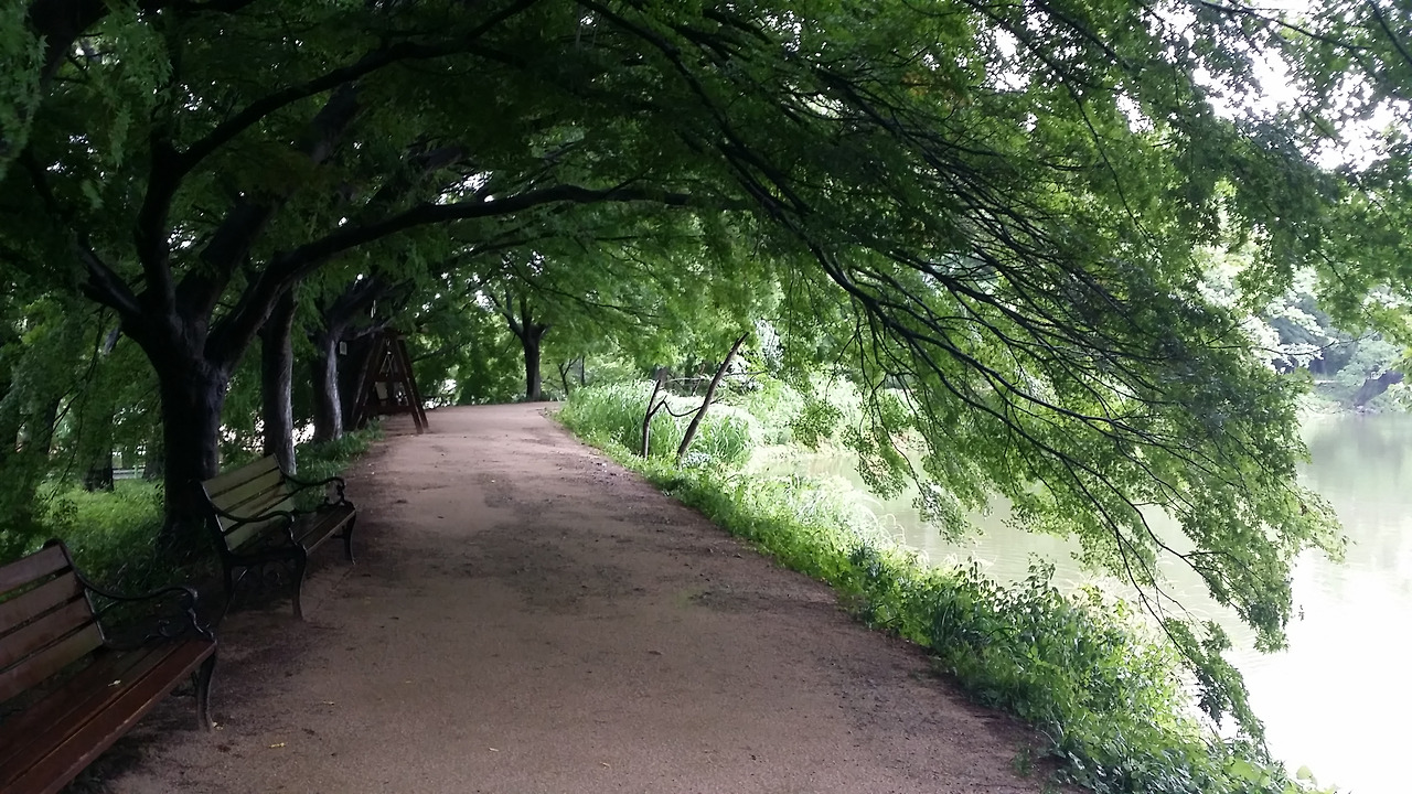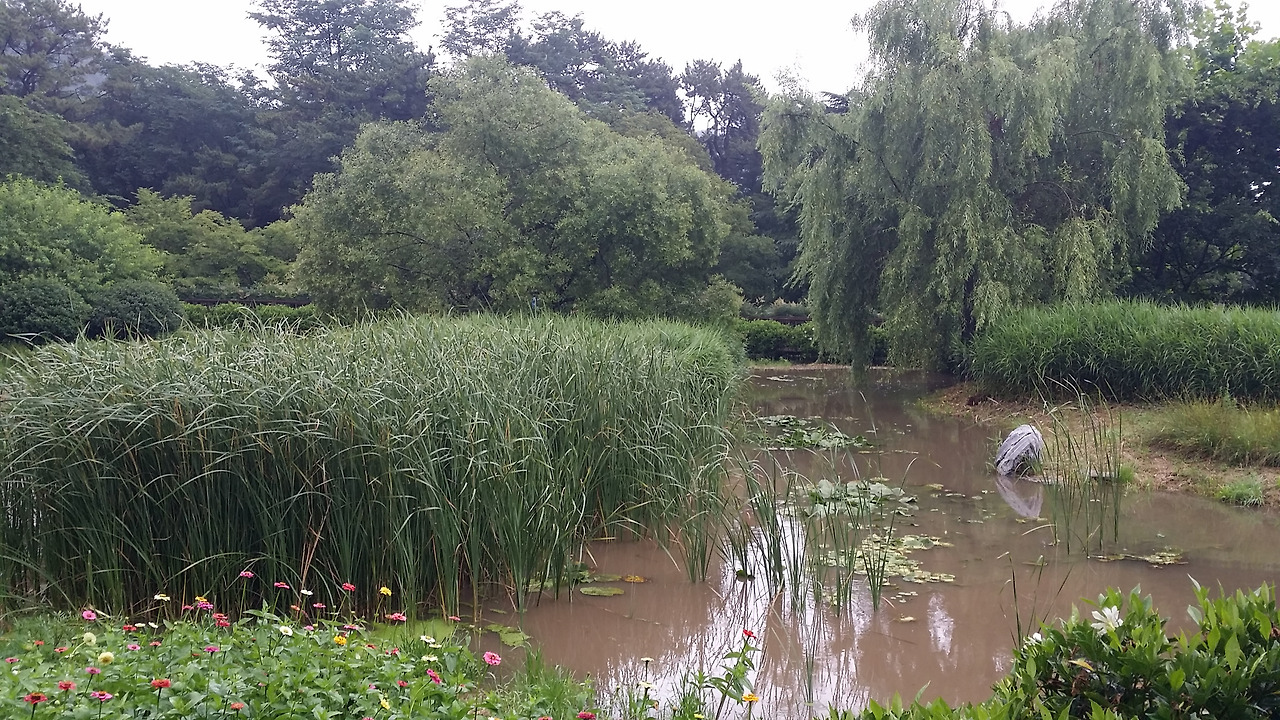 비가 폭우처럼 내린 덕을 봤다. 아무도 없는 생태공원을 거닐다 보니 잔잔한 호수에서 이런저런 생각을 할 수 있는 호사를 누렸다.