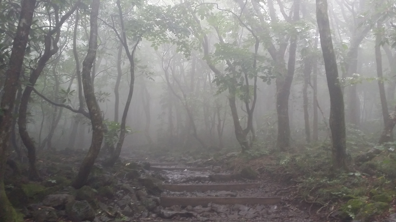 성판악을 향해 가는 5.16 도로는 파란 하늘을 점점 뒤로 보내더니 어느새 찌뿌듯하고 흐린 하늘이 더 짙어만 간다. 그 맑은 파란 하늘은 어디로 가고 온 산을 구름이 뒤덮는단 말인가. 멀리서 본 하얀색 구름 속으로 들어와 보면 구름 속 산책은 생각보다 썩 유쾌하지는 않다. 습한 구름이 습기를 내뿜으며 조금씩 비를 뿌리고 있다.