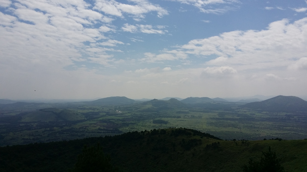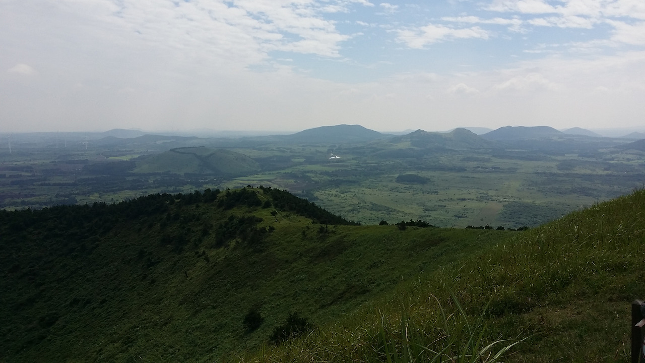그 날 역시 파란 하늘을 만나지는 못했지만 동부 제주의 풍광을 얻었고 아주 가까이 특이하게 생긴 아끈다랑쉬라는 작은 다랑쉬오름을 위에서 내려다보는 기회를 가졌다.