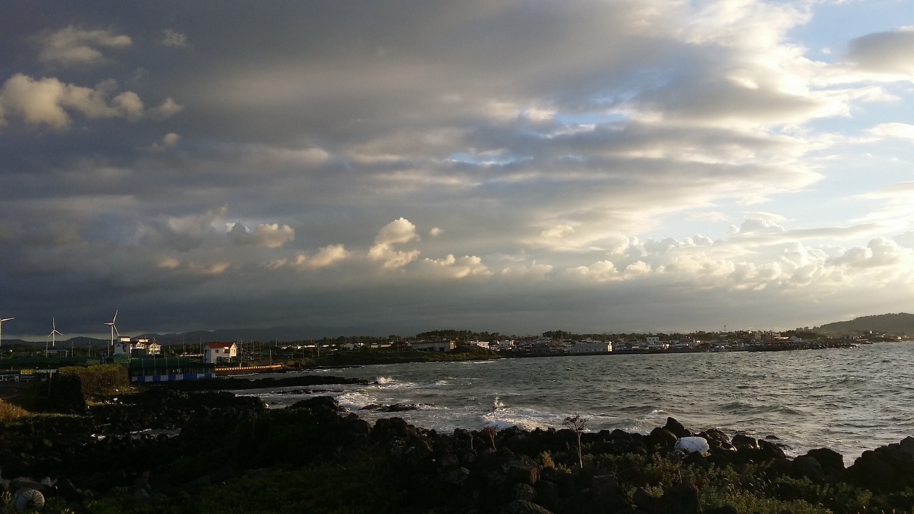 저녁 먹으러 가는 시간. 열심히 달려도 약속시간 안에 도착하기란 불가능한 일이다. 대신 이 날씨를 택하기로 했다. 차를 세우고 잠시라도 바다를 볼 수 있는 곳이 없을까. 이미 차는 김녕앞바다를 지나 함덕으로 향하고 있었다.