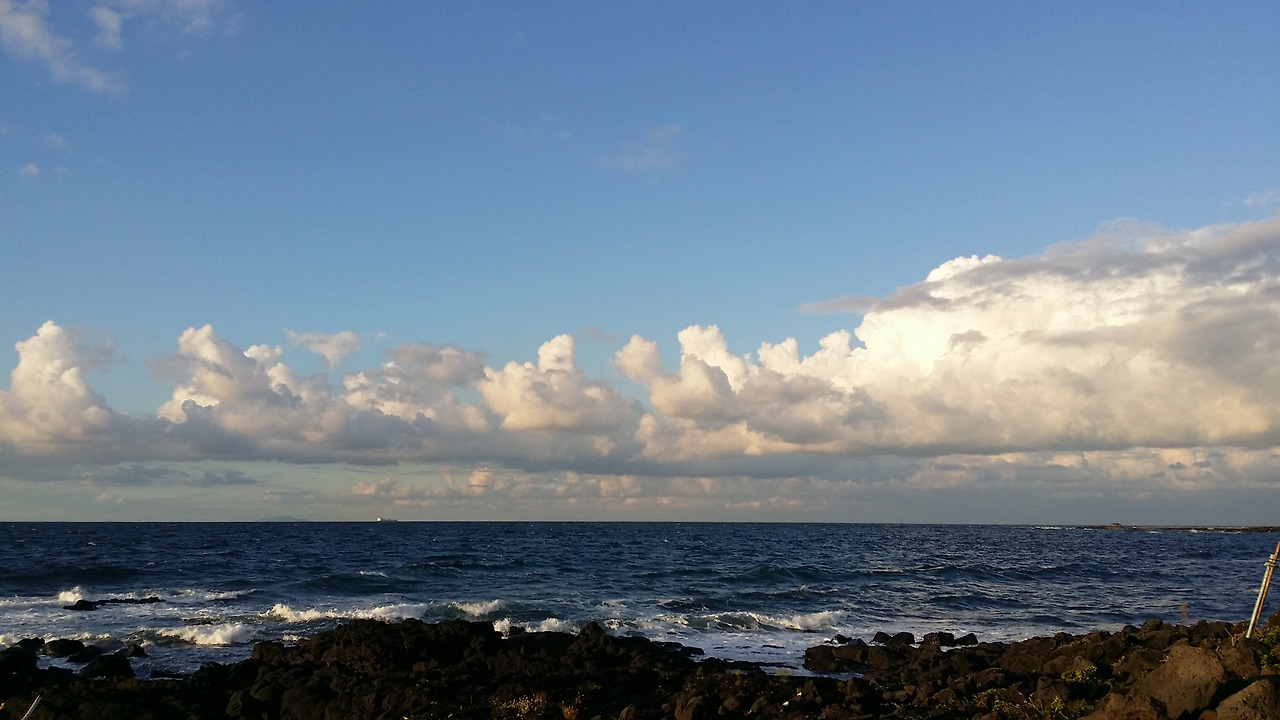 하늘이 티없이 맑기만 하고 구름 한점 없는 하늘도 아니다. 가장 큰 차이는 달리는 차안에서 수평선 너머로 희뿌옇게 물체가 보인다. 섬이다. 제주 북쪽에서 볼 수 있는 섬이라고는 동쪽의 우도나 서쪽의 비양도 혹은 차귀도 수준일텐데 저 섬들은 그 너머에 있다. 소위 한반도의 남쪽 섬이 눈에 들어온다. 완도군에 속한 섬 그 무엇일게다. 여서도라는 말도 있고 고흥반도라는 말도 있지만 솔직히 어느 섬인지 모르겠다. 함께 동행한 지인이 여서도라는 이름을 알려줬을 뿐이다.