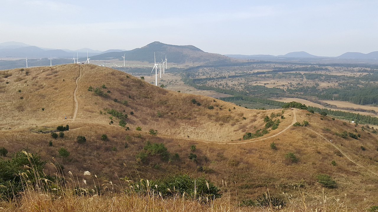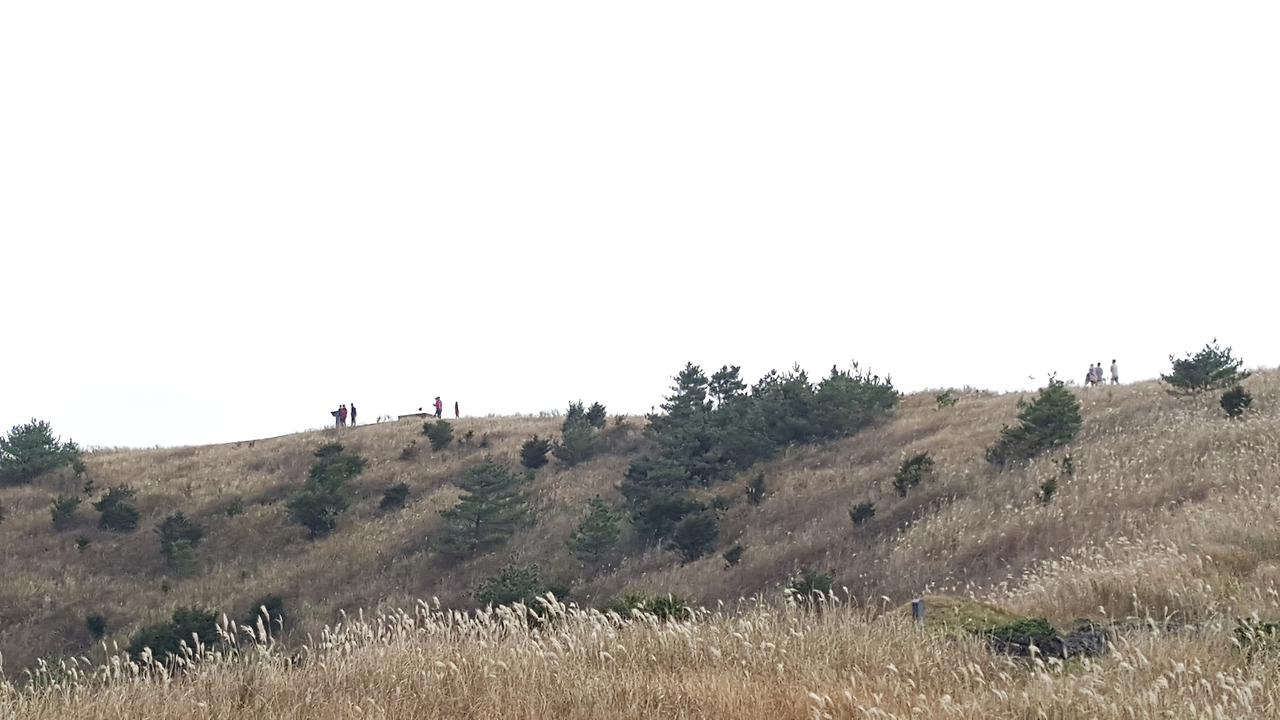 능선에 올라섰다. 정상을 향한 능선길도 좋고 오름 한 바퀴를 도는 길과 분화구를 가로지르는 길들이 억새 사이에 흔적을 남겼다. 억새를 보기 위한 다양한 사람들이 능선을 걸으며 타인과 경치를 생각하고 있으리라 서로에게 사람이 많은 번거로움을 탓하지 않을까 싶다.