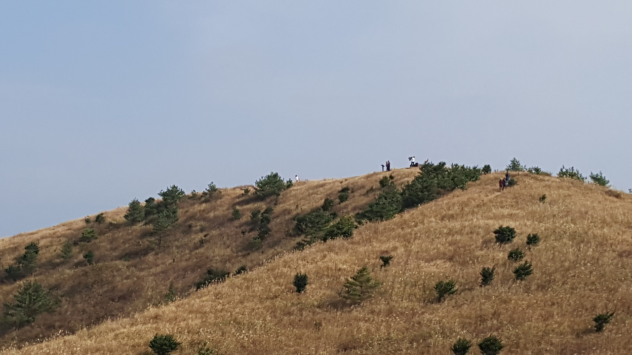 반대편 능선에 올라 정상을 바라보면서 생각에 잠긴다. 혹시 나는 누군가를 생각하면서 이 길을 걸을까. 아무런 생각 없이 무념무상으로 걷기 위한 연습이 필요한 것이 아닐까. 여전히 따라비를 떠나지 못하고 능선 이곳저곳을 서성인다. 아래쪽 벤치에서 쫄븐갑마장 가는 길의 팻말이 보인다. 내려가야 할 시간이다. 의외인 것은 내가 가는 길 쪽으로 적지 않은 사람들이 오르고 내리는 모습이 보인다. 저 사람들 모두 갑마장길로 가는 것을 아닐 텐데 하는 의구심이 든다.