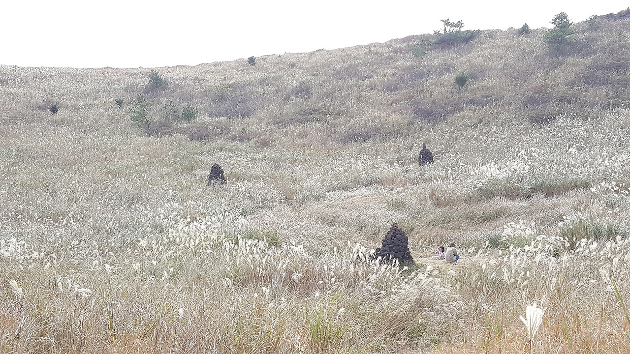 “먼저 갑니다”라는 인사를 남기고 총총히 길을 재촉한다. 팻말에는 가운데 분화구를 건너는 길이 갑마장길이라고 쓰여있다. 억새가 펄럭이는 와중에 분화구를 가로지르는 느낌은 매우 독특하다. 마치 이곳이 공원인 듯 익숙한 즐거움이 가득이다.