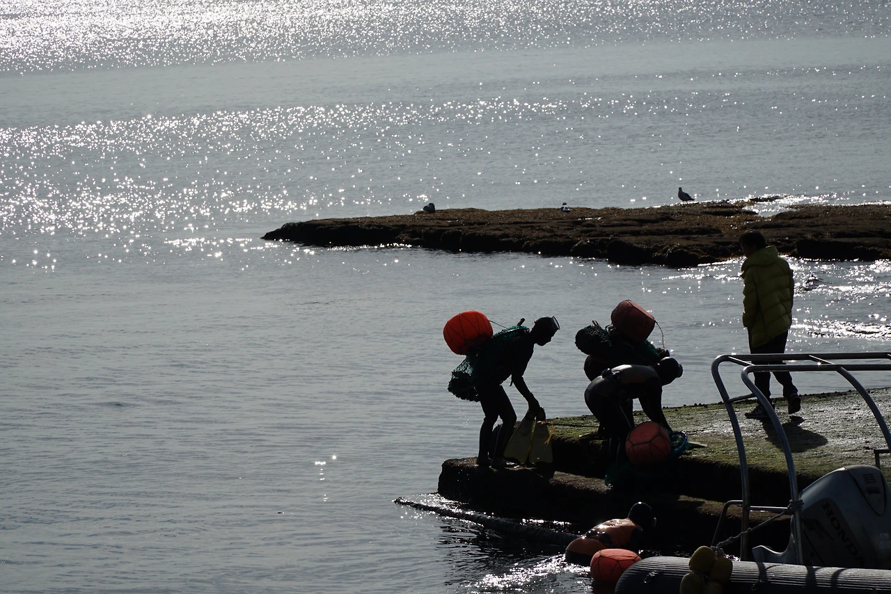 해녀들의 물질이 신기한 듯 관광객들이 바닷가 코 앞에 까지 다가가 구경을 하고 있다. 그리고는 뒤따라 나온 해녀들이 잡은 해산물들을 신기한 듯 쳐다본다. 해녀 삼촌 한분이 문어를 꺼내 들고는 그들에게 흥정을 시도한다. 한 마리에 2만 원이란다. 관광객 한 명이 머뭇거리더니 살 기세다. 문어를 사서 어쩌려는지 모르겠으나 사고자 하는 의지가 강하다. 식당에 가져가서 삶아달라고 하려는지 자세히 모르겠다. 먹거리에 대한 중국 관광객들의 의지는 사뭇 강렬하다.