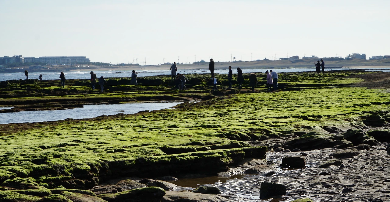 중간쯤 걸으며 상점이 사라지고 모래언덕과 광치기 해안의 묘안 모습이 시작된다. 해초들의 푸르름이 뒤덮고 있는 모습이 코앞에 다가선다. 이 느낌은 무어라 말하기 힘든 심정이다. 어렵고 슬프다. 이 자리에 또 하나의 어려움이 덥혀져 있다.