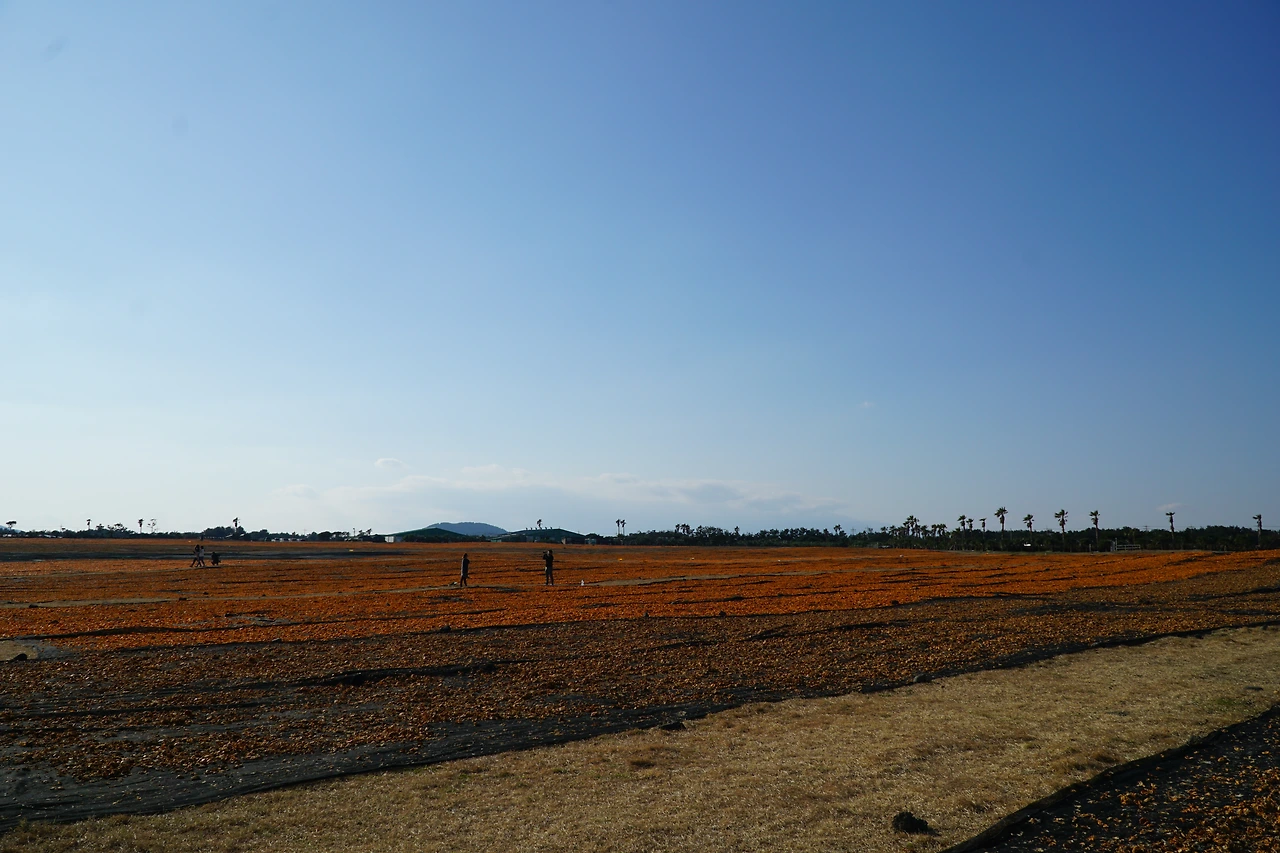 그래서인가 목장주가 이곳 신천목장을 폐쇄하려 한다는 뉴스가 나온다. 이곳을 찾아 드넓은 귤껍질 말리는 장면과 찬란한 바다와의 대비를 만끽할 시간도 얼마 남지 않았음을 감지할 수 있다.