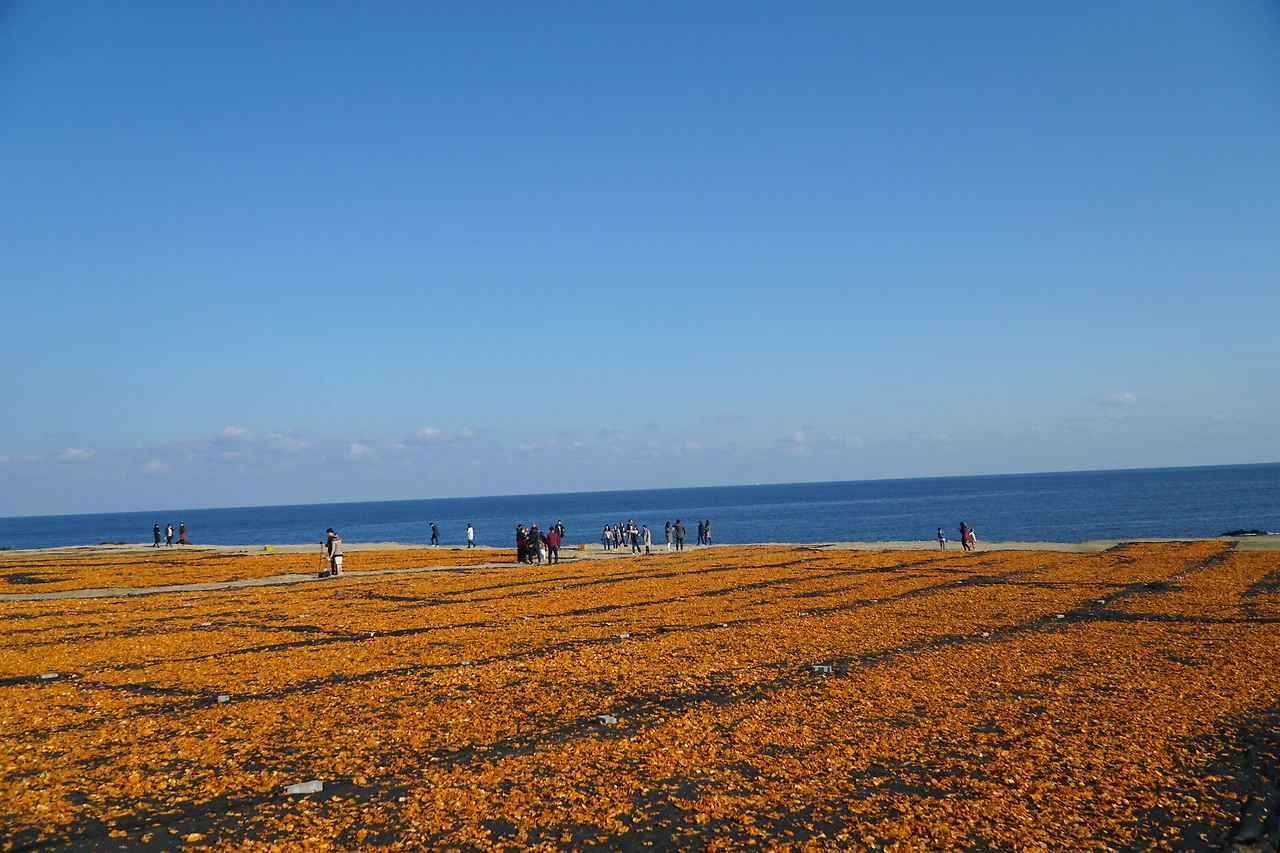일하는 분들은 관광객들의 수많은 방문에도 아랑곳 하지 않은채 열심히 껍질을 널고 뒤집고 하는 공동작업을 진행중이다. 그 모습 또한 그냥 넘기기는 어려운 장관이다. 드넓은 벌판에서의 일이란...