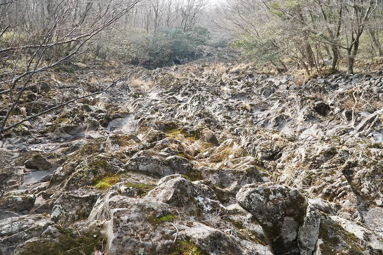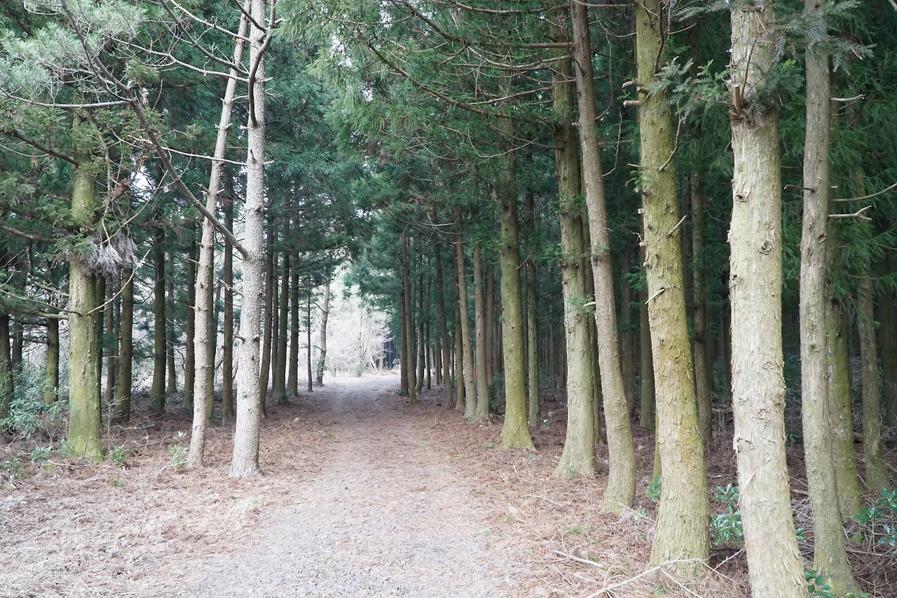삼나무 숲을 지나면 나무는 겨울 수목의 특징을 그대로 앙상한 가지들이 마구 뒤엉켜 봄이 오고 잎이 붙으면 얼마난 무성한 숲이 될는지를 알려주는 듯싶다. 다만 밑바닥의 조릿대 식생은 이 숲의 식생이 한라산 언저리에 가까움을 알려준다.