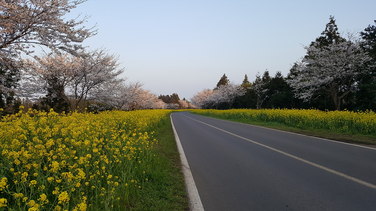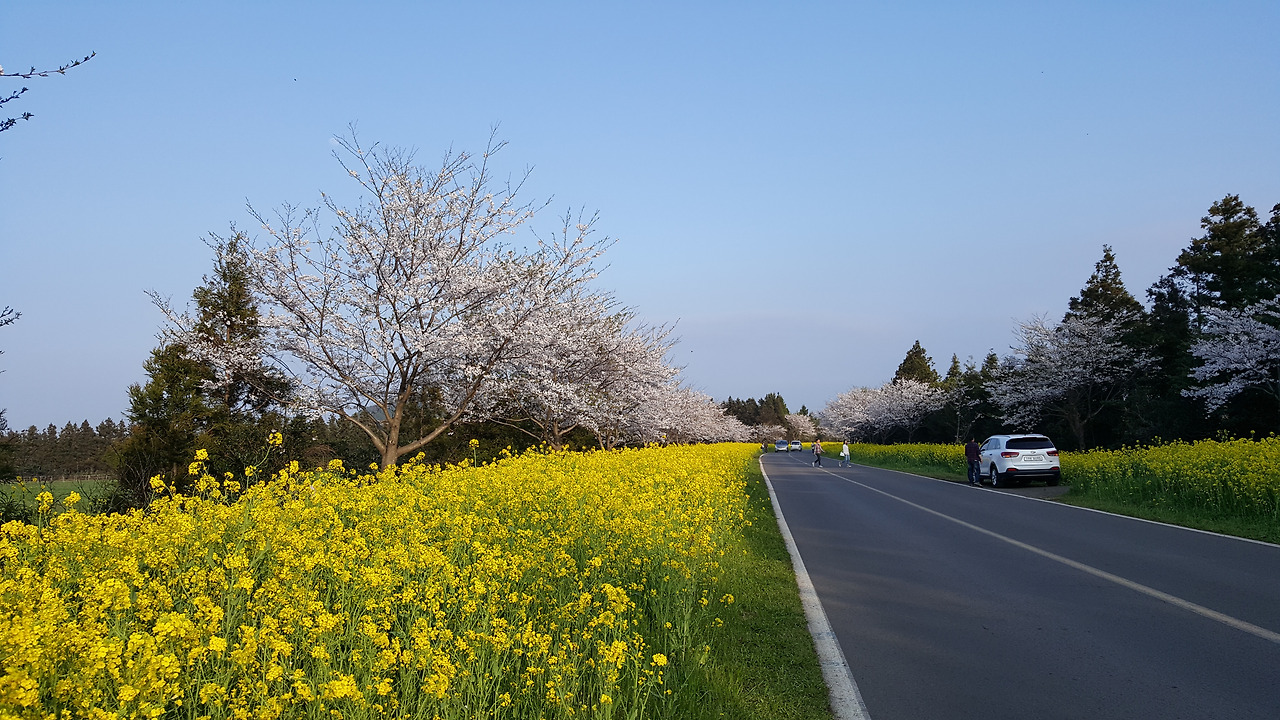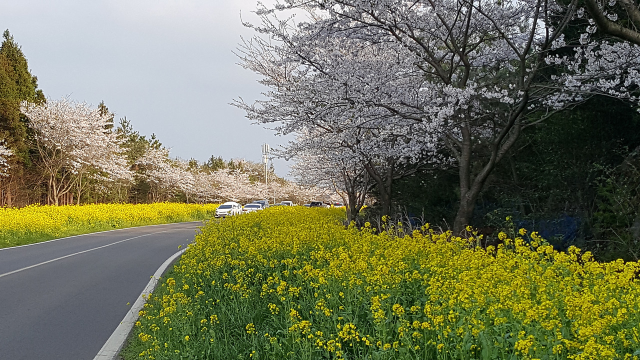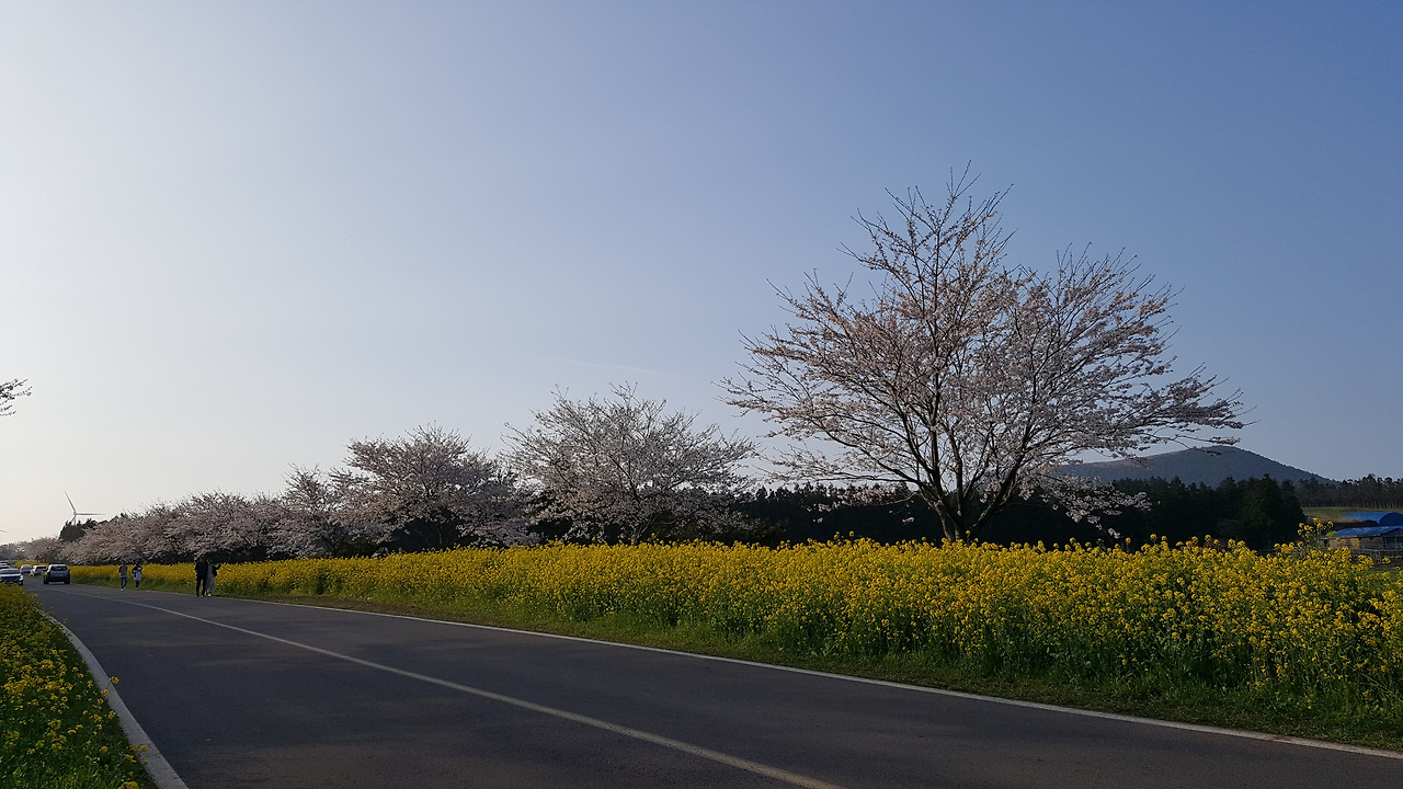 모든 길이 더 이상 노란색을 거부할 수 없는 시점이 되면 제주 곳곳은 유채꽃의 자연스러운 축제가 열린다