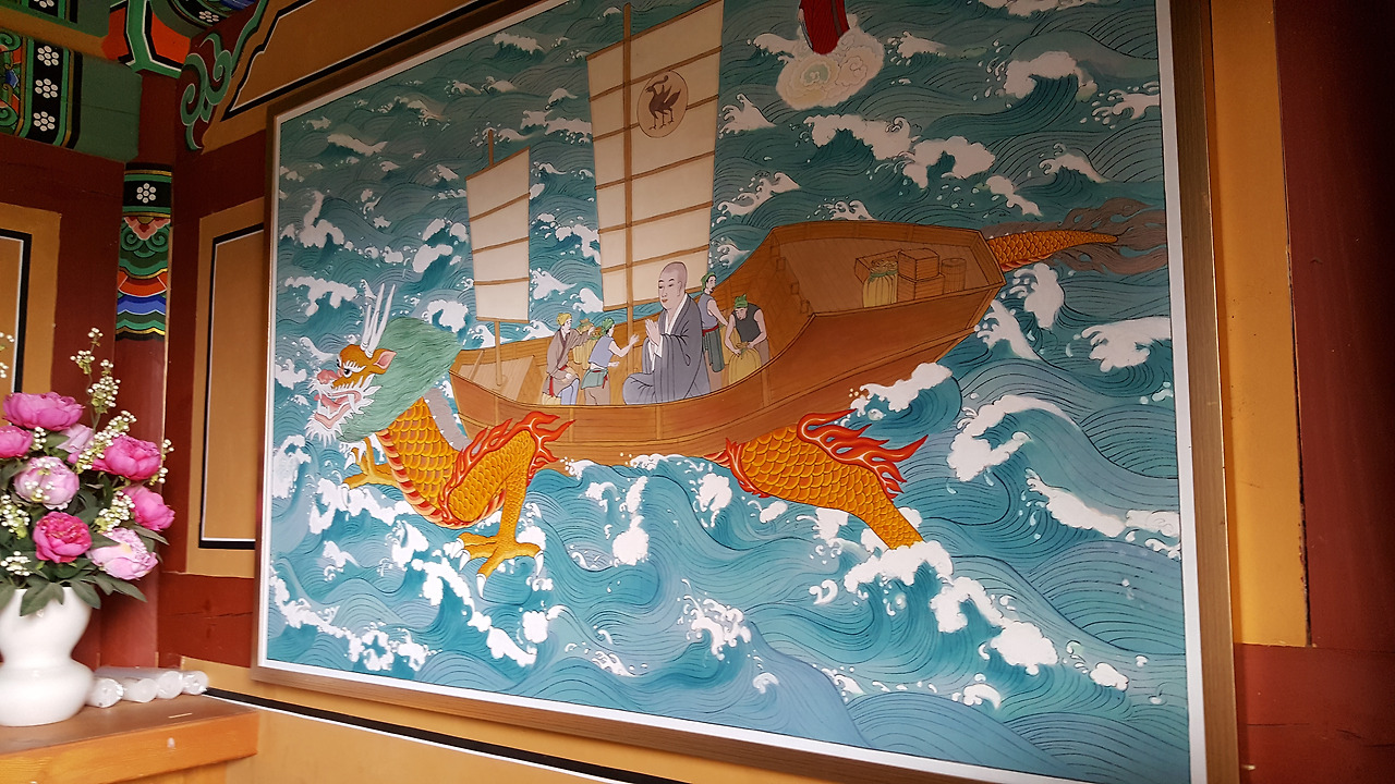 신라 문무와 1년 (661) 의상대사가 화엄학을 공부하기 위해 당나라에 갔을 때 의상대사를 연모한 선묘라는 여인이 있었다. 의상대사는 중국 장안에 있는 종남산 지상사의 지엄 삼장에게서 10년간 화엄의 도리를 배우고 깨달음을 얻은 후 귀국길에 올랐다. 뒤늦게 소식을 들은 선묘가 부두로 달려갔을 때 대사가 탄 배는 이미 사라지고 없었다. 선묘는 바다에 몸을 던쳐 용으로 변신하여 의상 대사가 탄 배를 호위하여 무사히 귀국하게 하였다.