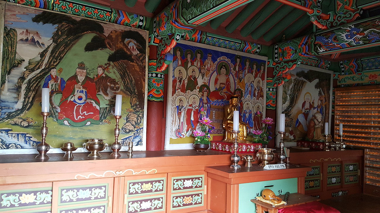마치 정겨운 친구나 친인척을 만나는 듯한 기분으로 삼성각 내부를 쓱 훑어보고는 살짝 그림 속에 남아있는 산신령에게 미소를 보내며 인사한다. 그곳에 들어가서 절까지 할 일은 아니지만 이곳에 다녀갔다는 가벼운 인사 정도는 나누는 것이 하나도 이상하지 않은 장소다.