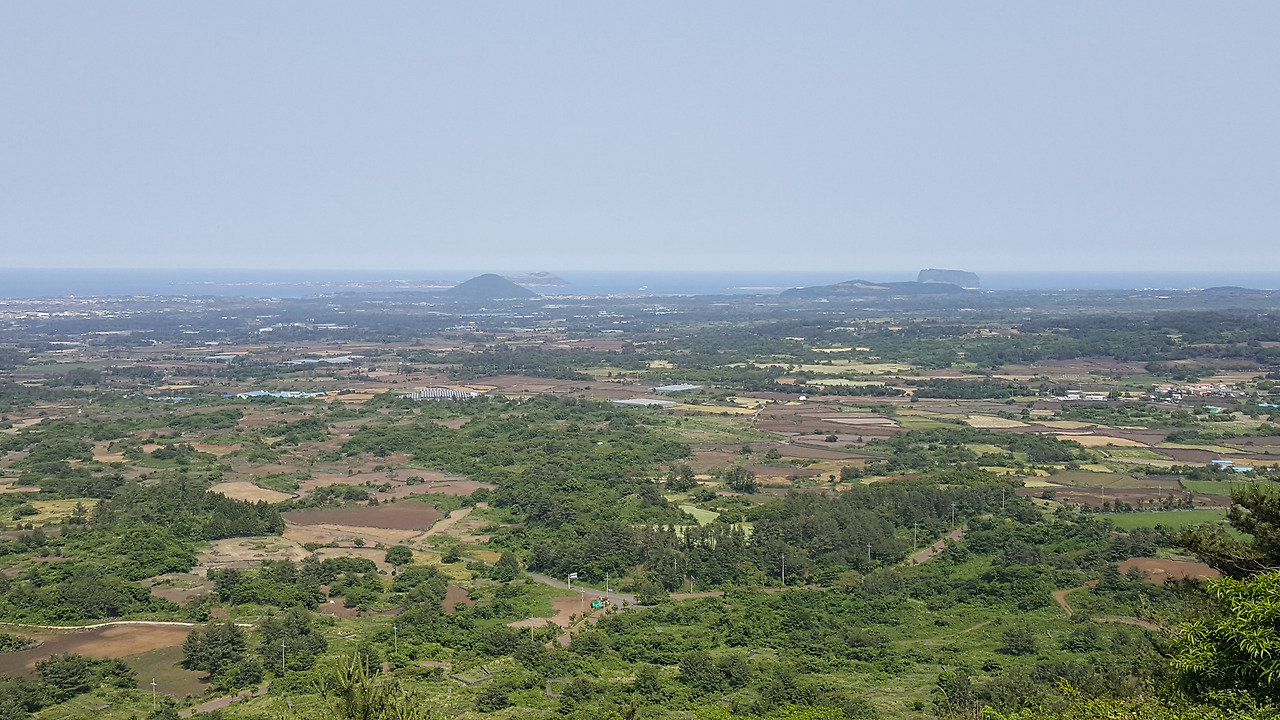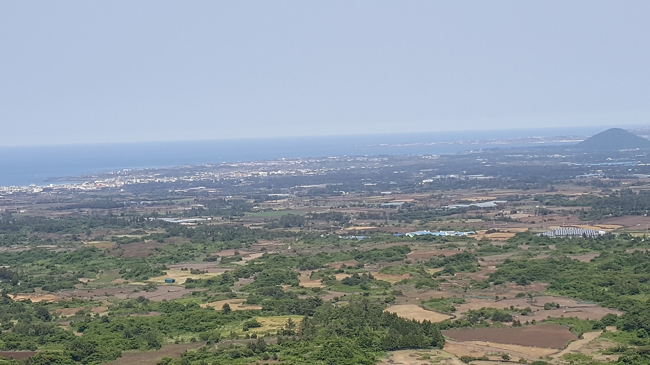 바다쪽가 한라산 쪽 방향의 풍광이 극적인 대조를 보인다.