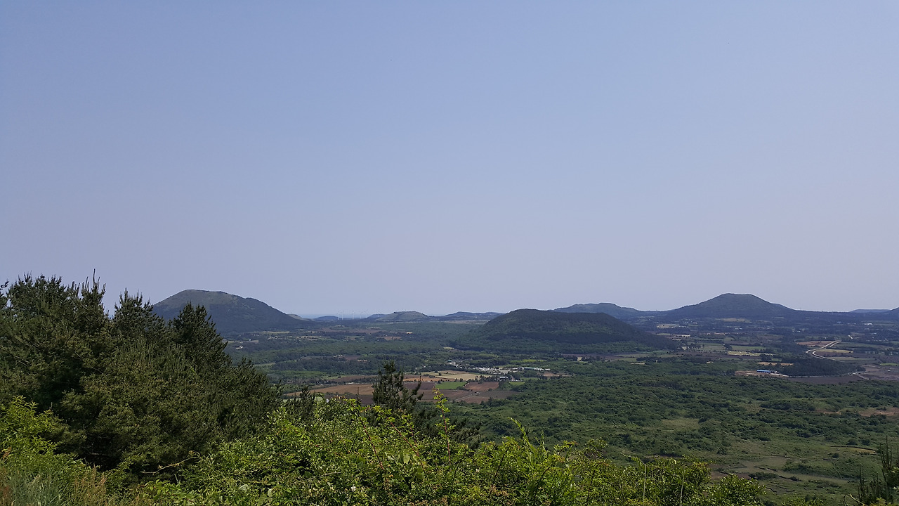 마지막 남은 물도 차에 남겨두고는 뙤약볕을 내리 받으며 오른다. 그래도 어렵게 어렵게 오른 정상은 언제나처럼 적절할 보상이 뒤따른다. 한동리의 너른 밭들이 눈앞에 펼쳐지고 그 앞에 바다가 너른 느낌을 이어받았다.