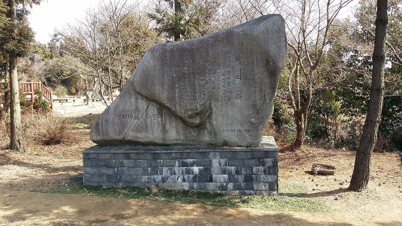 큰 어려움 없이 물영아리라는 오름을 찾았고 정상의 분화구에 물이 고여있다는 드문 경우를 소개하는 블로그 몇편을 찾았다. 그런 점을 떠나 적절한 시간의 등반을 하고 다시 남쪽으로 휫 달아나기 좋은 장소를 찾고 있는 중이었다. 차를 타고 가다보니 주소는 수망리다. 제주시 경계를 넘은지 얼마 되지 않은 지역의 초입 길가에 생뚱맞은 오름 주차장과 표지석이 서있다. 재빨리 차를 옆으로 세우고 조심스레 주변을 살폈다. 주변을 살피기를 잘했다. 오름과 상관없이 멀리 보이는 한라산 정상이 눈덮인 모습으로 하루를 반겨주고 있다.