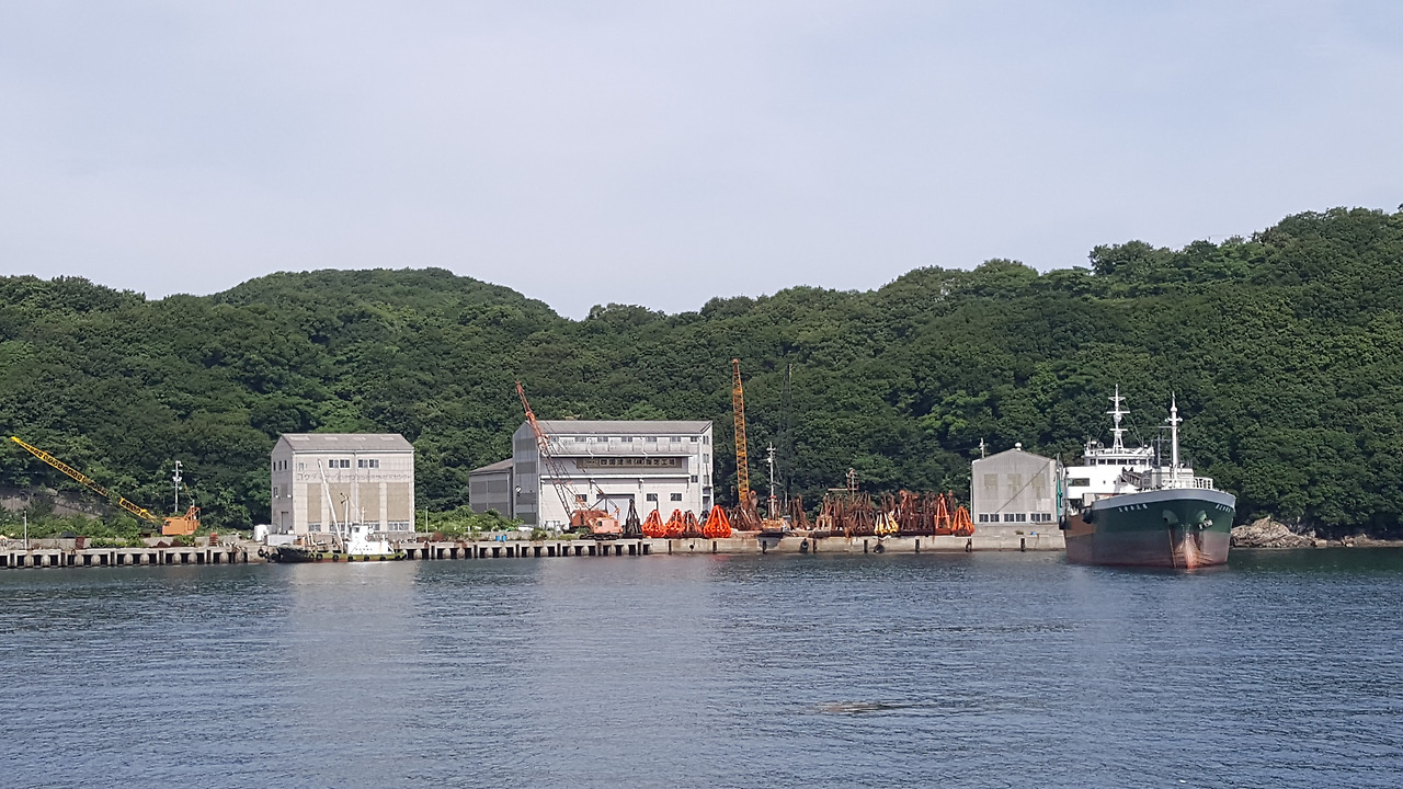 조선소에서나 사용되는 크레인이 보이고 경제가 활성화된 항구에서 흔히 볼 수 있는 화물선이 곳곳에 진용을 갖추고 있다. 통상적으로 조그만 어선들이 진을 치는 한국의 모습과는 많이 다르다. 또한 항구에 맞닿아 적지 않은 건물들이 다닥다닥 붙어있다. 섬의 생김새가 완만하기보다는 아주 가파른 곳이니 항구 주변에 집들이 모여 있는 것은 당연한 모습일 테지만 건물 뒤편에 거의 여유가 없어 보이는 곳이라 그런지 굉장히 각박하고 공격적인 느낌까지 나는 곳이다.