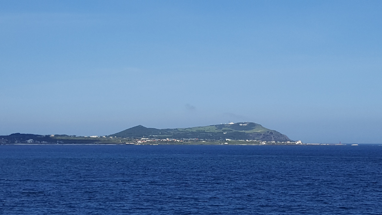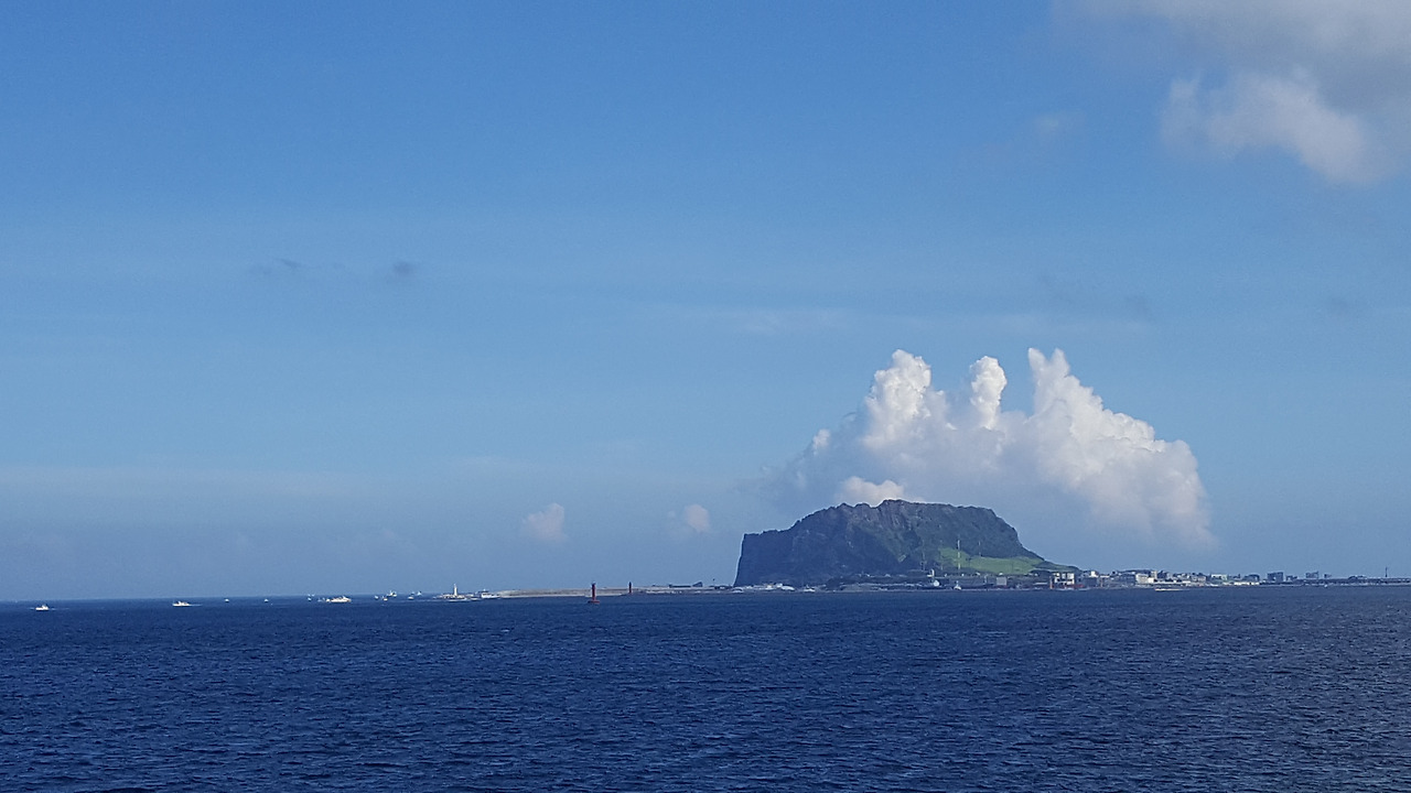 성산일출봉의 뒤편 언저리에 무성한 구름과 더불어