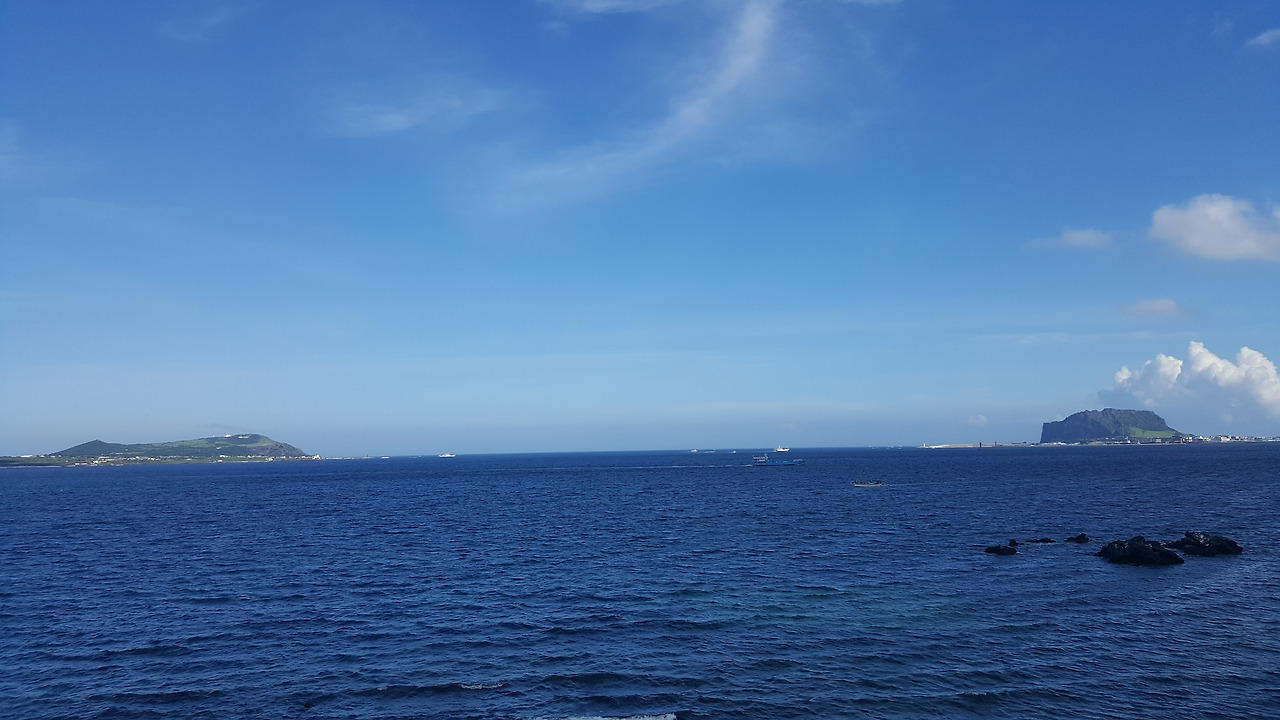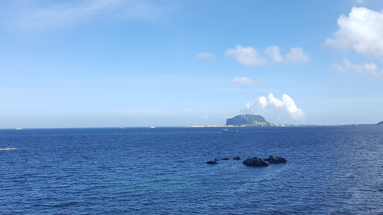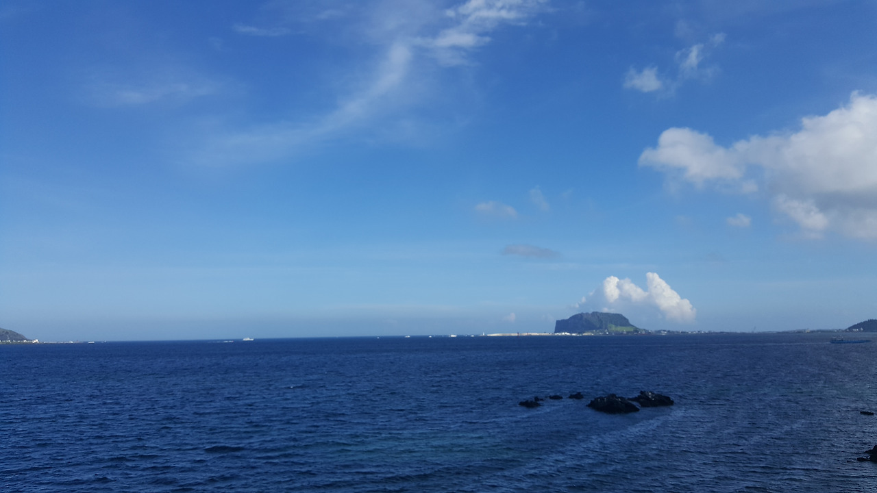 작은 돌을 징검다리 삼아 저 앞의 일출봉과 우도를 훌쩍 밟아 뛰어오르고 싶어 진다.