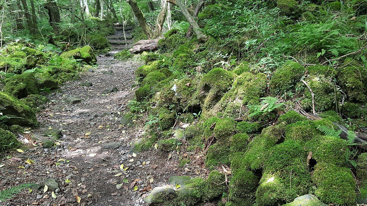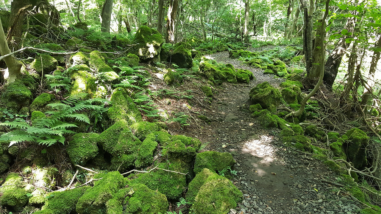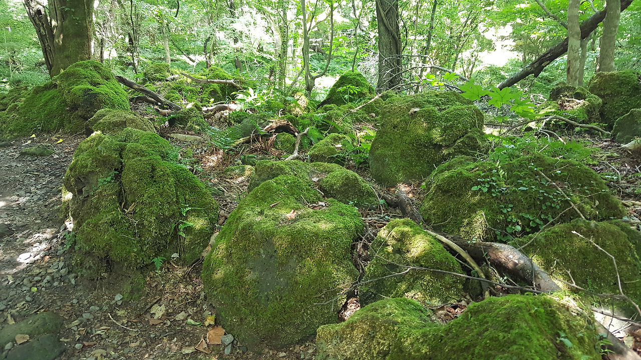 오랜 기다림도 없이 갑자기 초록이 온 숲을 뒤덮는 느낌을 준다. 낙엽활엽수가 메인 수종이어서 그런가 푸르름의 깊이가 다른 숲의 느낌보다 좀 더 진하고 강하다. 내가 좋아하는 색이다. 이끼가 잔뜩 끼어있는 돌무더기가 내 앞에 나타나기 시작한다. 나는 돌에 이끼가 잔뜩 끼어져 있는 모습을 무척이나 좋아한다. 습기가 가득 차 있다는 의미기도 하지만 원초성을 담보하는 증거이기도 하다. 원시적인 생명력이 뭐가 그리 좋다고...