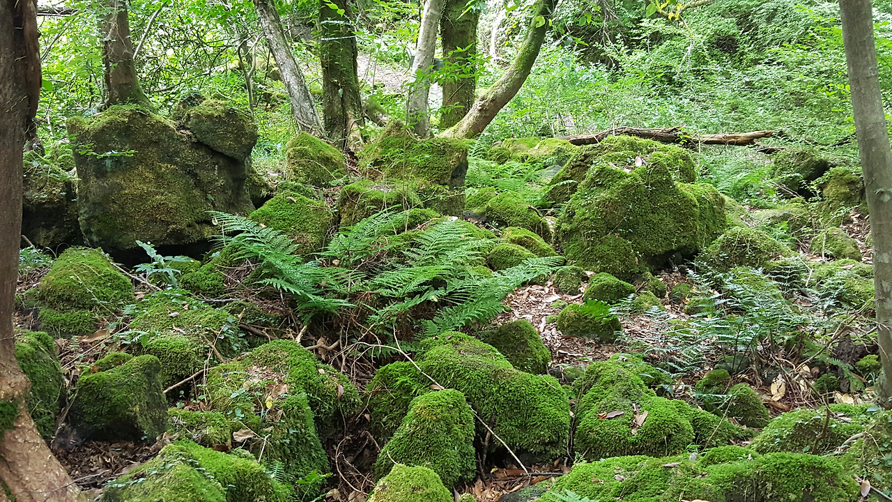 숲에 널브러져 있는 수많은 이끼 낀 돌들을 보면서 드는 생각.