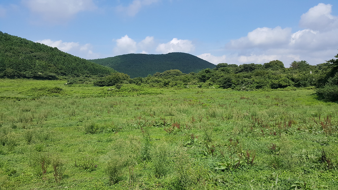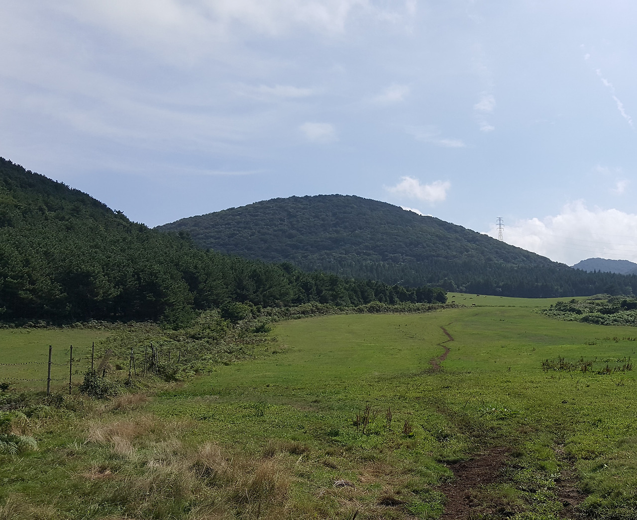 이제부터는 초원을 걷는 즐거운 길이다. 예상치도 못한 목초지를 만나게 될 줄은 몰랐다. 단지 오름 사이에 밭이 있거나 아니면 덤불로 덮인 숲길이 이어지며 족은지그리로 이어질 줄 알았다. 그 사이에 이토록 멋진 목장길이 뻗어 있다니 여기는 꼭 다시 한번 찾아와 보리라. 걸어도 걸어도 기분 좋은 길이다.