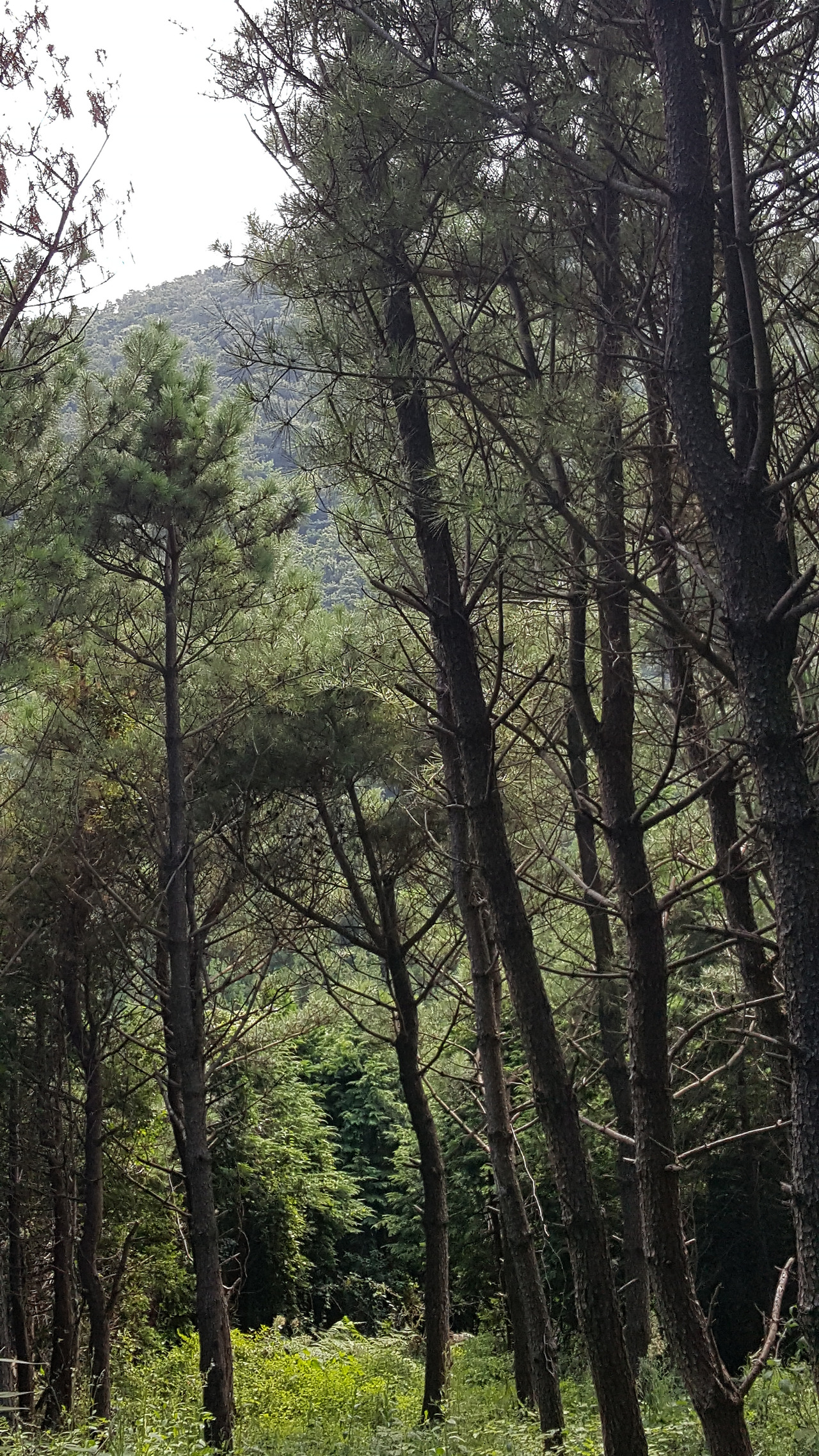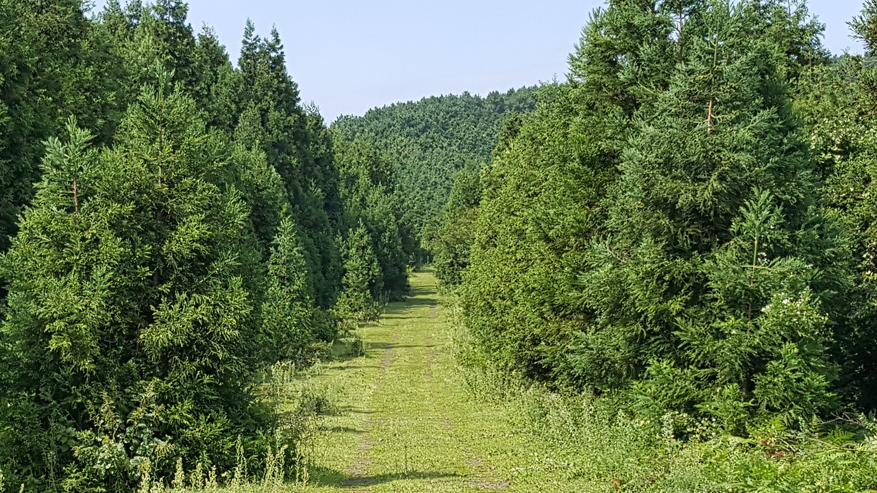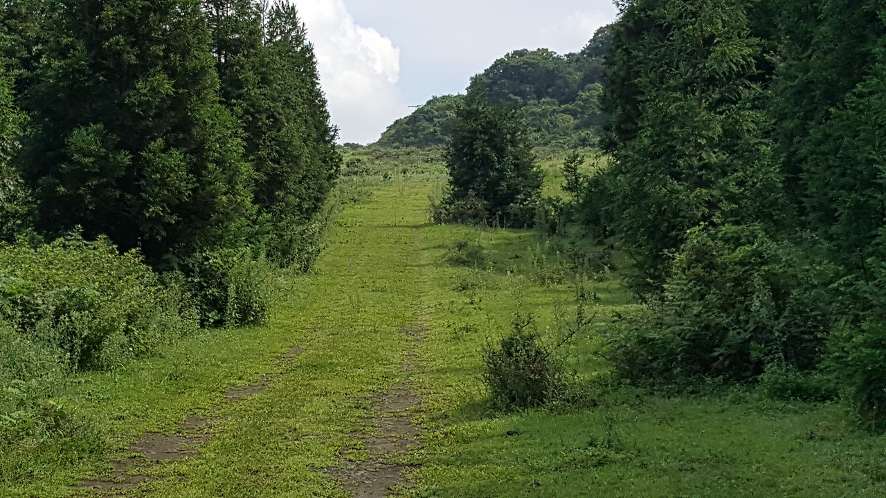 정상 부근임을 확인하고 몇 걸음 옮긴다. 바로 내리막이다. 갑자기 어두운 숲이 눈앞에 펼쳐진다. 조림한 숲임을 알 수 있게 일정한 간격이 유지되어 있다. 정상 부근의 잡목들과는 확연히 다른 어두운 분위기다. 저 아래로 내려가면 바로 초원이 펼쳐질 것을 알겠다. 너무나 싱겁다. 그 싱거움에 대한 반항이랄까 갑자기 다른 길을 찾아 내려가 보자는 생각이 머릿속을 스쳤다.
