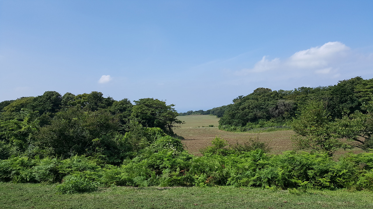 중간에 아래로 내려가는 길이 있어 살짝 나가보니 숲 밖의 세상으로 인도한다. 너른 들판에 초원이 가득한 모양이다. 너무나 멋지고 시원한 풍경이다. 목장 어디쯤인가 싶은데 어디인지 앞뒤를 알 길이 없다. 말이라도 타고 돌아다녔다면 초원을 달려가겠지만 걷는 길에서는 정해진 탐방로가 나에게는 안정적인 퇴로인 셈이다.