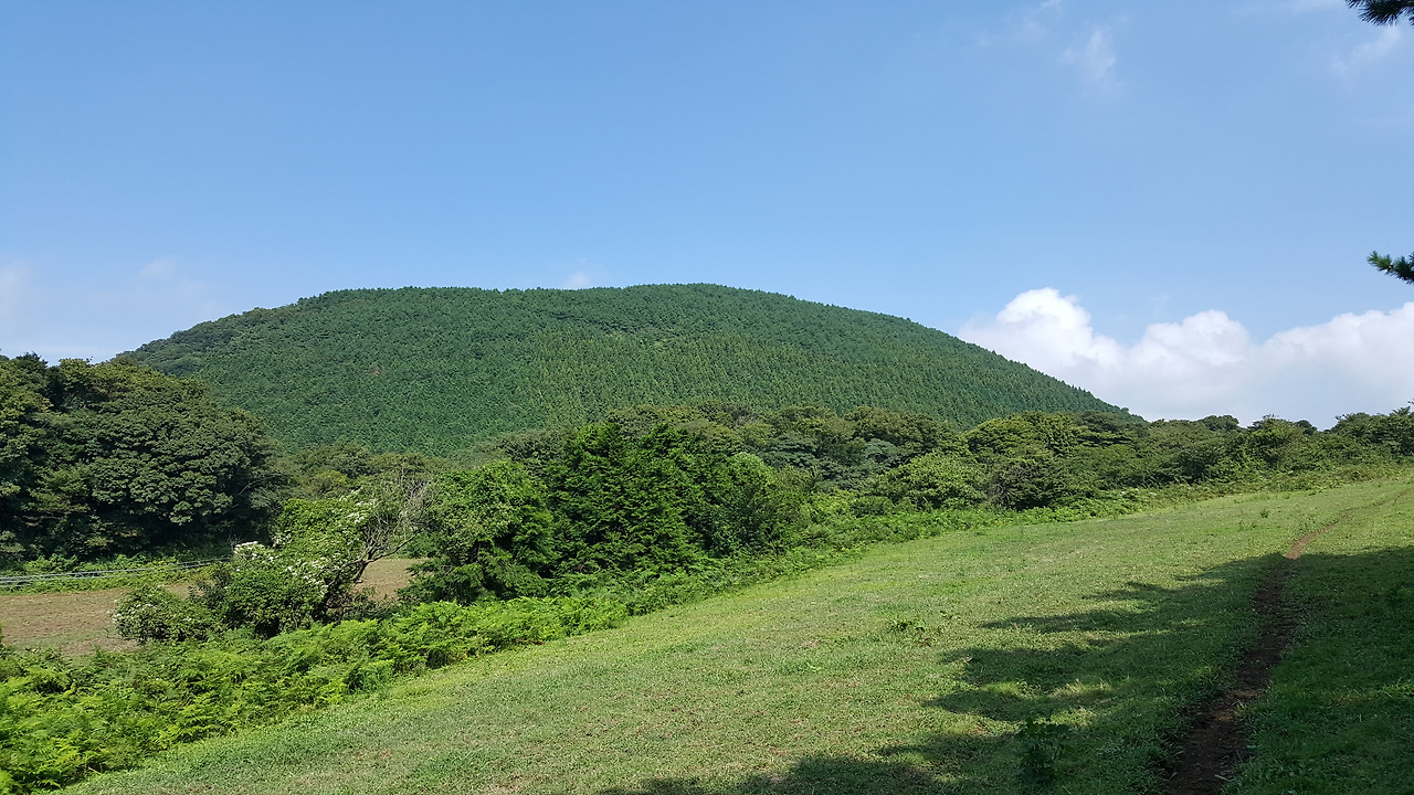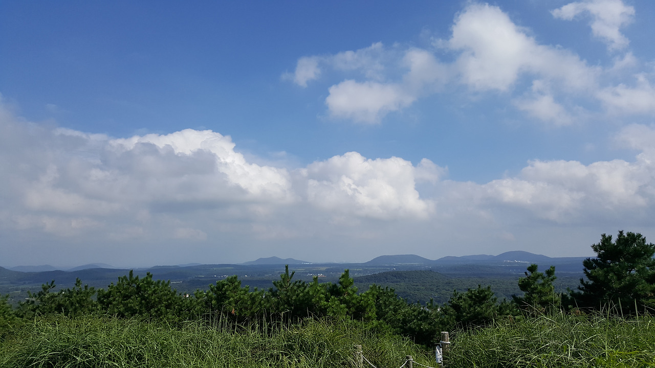 그제야 아까 만난 어르신이 한 일을 알겠다. 정상 주변의 벤치와 부근의 풀들을 깔끔하게 깎은 후 내려가는 길이었던 것이다. 이 오름을 지키는 분인지 아님 자원봉사인지는 모르겠으나 고마운 일이 아닐 수 없다.