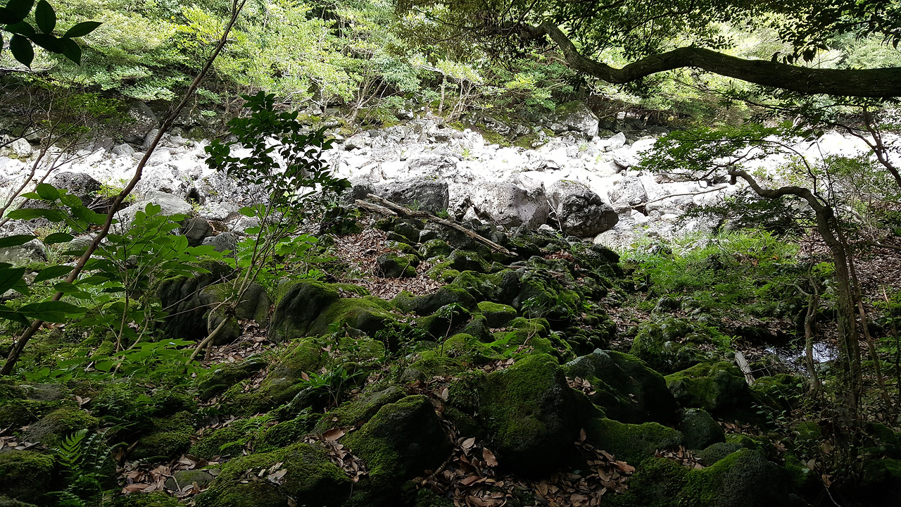 숲은 겉에서 보기에는 음침하지만 한 발짝 안으로 발걸음을 옮기는 순간, 그 모든 것이 선입견이었다는 것을 알게 해 준다. 다양한 식생은 물론 촉촉한 분위기가 무엇보다도 원시적 생기를 전해주고 있기 때문이다. 그 원시적 생동감을 느끼고픈 심정을 아는지 멀지 않은 곳에 온통 이끼로 뒤덮인 돌무더기가 나를 반겨준다. 아 저 초록의 생동감이여!
