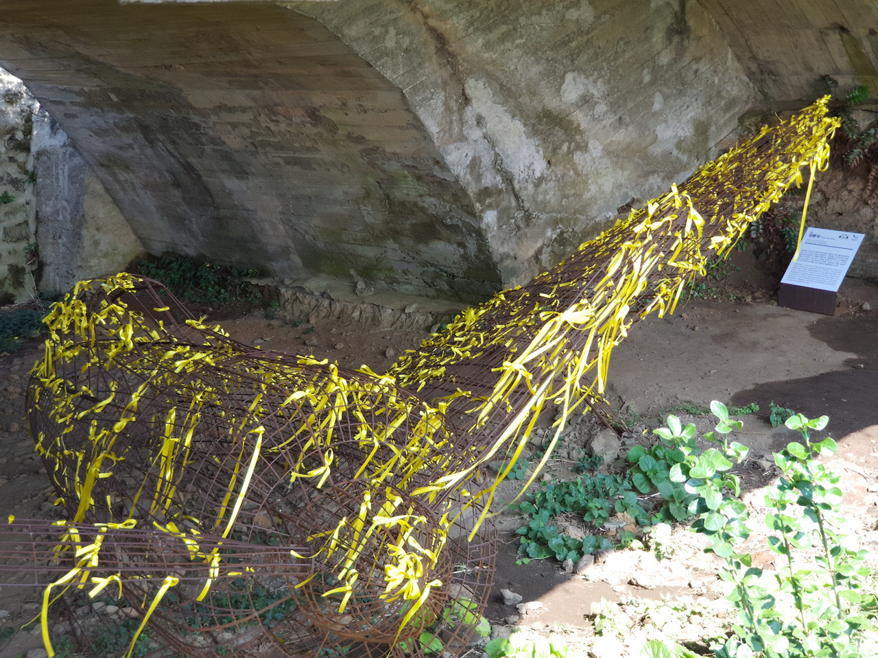 강문석 작가의 작품 역시 맘이 편하지 않다. 리본이라는 이미 너무나 일반화된 도구를 땅에 박힌 제로센에 아무리 매단들 팽목항의 그 치열함을 능가할 수 있겠는가. 전쟁의 폐허를 환기시키고자 했다면 세월호로 인식되는 노란 리본을 사용해서는 안된다고 생각한다. 이는 작가적 상상력을 의심받을 수 있기 때문이다. 또한 메시지가 별로다. 본인이 내 평가를 듣는다면 발끈하겠지만 상상력이 조금은 가슴 아픈 추억과 닮았다.