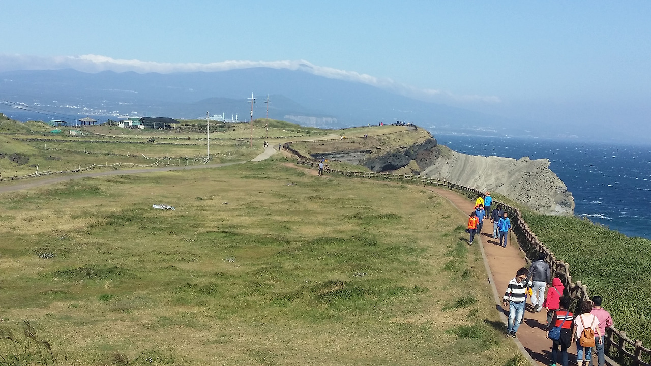 걷는 도중 파도가 요동치며 나를 향해 달려왔다. 사실은 나라는 존재를 안중에 두지도 않은 채 자신을 드러내고 있는 중 나를 향해 달려든다는 느낌은 내 억지에 불과함을 잘 안다. 잠수함 선착장은 폐쇄됐고 마라도 가는 배편도 끊겼다. 온몸을 날려버릴 바람이 송악산을 한 바퀴 돌아오라는 올레의 신호에 의구심을 자아냈다. 갈 것인가 말 것인가. 그 기우는 막상 그곳에 가지 않았다면 아주 큰 후회를 할 뻔한 망설임이었다는 사실을 알게 되었다. 참으로 멋진 산이다. 추후 편한 시간에 다시 방문하고픈 장소라는 생각이 들었다.