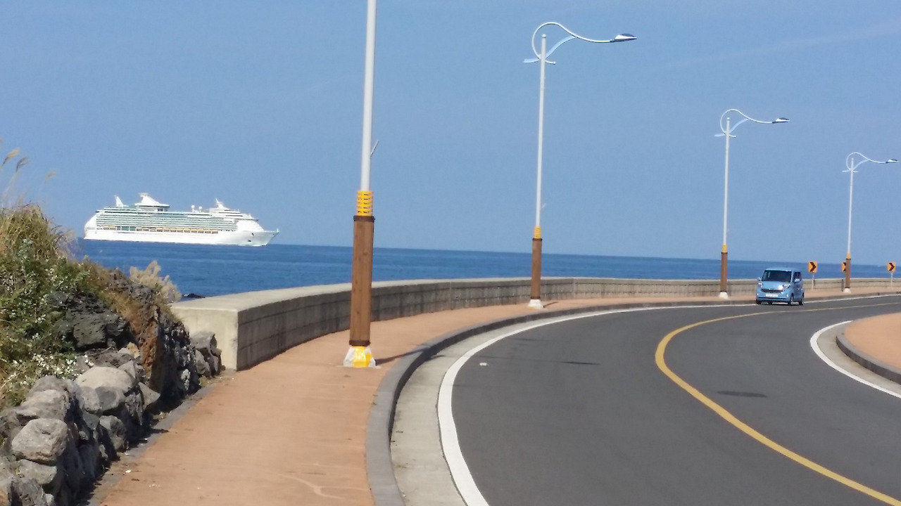 이 현무암덕에 흐린 날 제주는 더 우울함을 준다. 저 여객선은 항구를 빠져나오더니 서서히 제갈길을 간다. 아마도 육지의 어느 항구를 향해 가고 있겠지. 부산이나 목포 아니면 다른 어디든... 세월호가 저 녀석 같은 모습을 띠고 있었을 것을 생각하니 즐거움 한편에 써늘함이 다가선다.