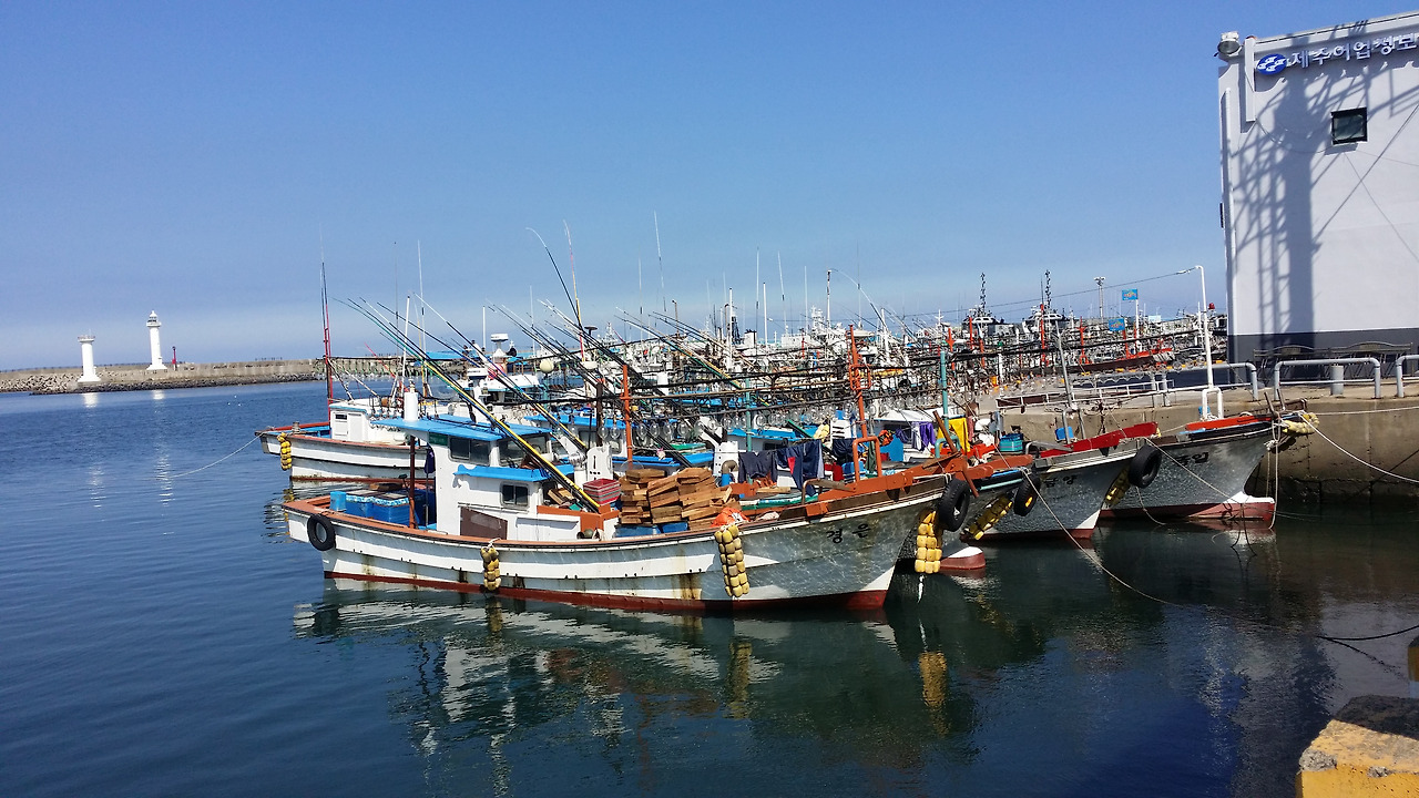발걸음은 금새 제주항에 닿는다. 올레길은 이 길이 아니겠지만 옆으로 살짝 새서 항구를 보고 싶었다. 항구의 끝자락에 배들이 정박해있다. 아마도 밤이 되면 잔뜩 불을 켜고 바다로 나가지 않을까. 오늘이 일요일이라 쉬는 날은 아닐까 하는 생각으로 사람 한 명 없는 항구의 끝자락을 걷고 있다. 선원 관련 건물들이 여기저기 서있고 이 낯섦은 인천 출신인 나도 어쩔 수 없다. 항구만이 갖는 묘한 낯섦과 설렘이 함께 있다. 이전의 모슬포항과는 또 다른 익숙함과 낯섦이 겹쳐있다. 모슬포항은 먼 남쪽의 항구에 와있다는 느낌이라면 이곳은 인천이나 목포 군산의 항구를 연상케 한다.곧 그 연상이 일부는 맞고 일부는 역시 다르다는 결론을 얻게 됐다.