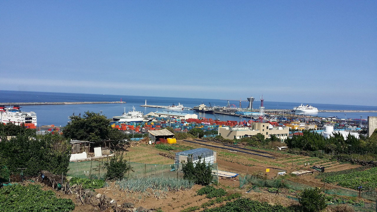 단 하나 이곳에서 보이는 풍광이 인천과 다르다. 인천이 항구를 향하되 탁한 색깔의 바다를 향하고 있다면 이곳은 말 그대로 파란 바다를 향해 집들이 서있다. 역으로 혹시 산토리니 같은 느낌을 조금은 풍긴다고나 할까... 항구가 제대로 눈에 들어오기 시작했다. 제주항과 카페리호가 눈에 들어온다. 운치 있는 풍경이다. 이날 오후 한나절을 걸으면서 계속해서 이 항구의 모습이 눈에 떠나질 않았다. 이 항구 주변을 걷는 하루였다는 소리다.