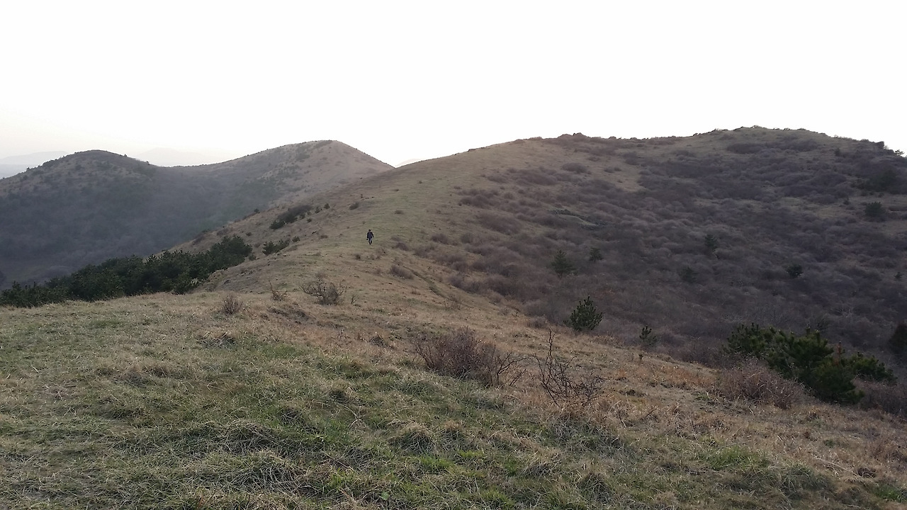 능선을 접고 나면 다시 내리막길과 오르막이 보인다. 이곳도 역시 직설적이다. 특별히 다른 군더더기 없이 길이 나있다. 물론 길이 S자로 구부려져 있지만 높이를 천천히 내력 가고자 하는 이유는 아니다. 약간의 걷기 편한 길을 찾다 보니 살짝씩 휘어있다. 내려갈 때는 쉬우나 올라갈 때는 숨이 다시 헐떡인다. 에구구...