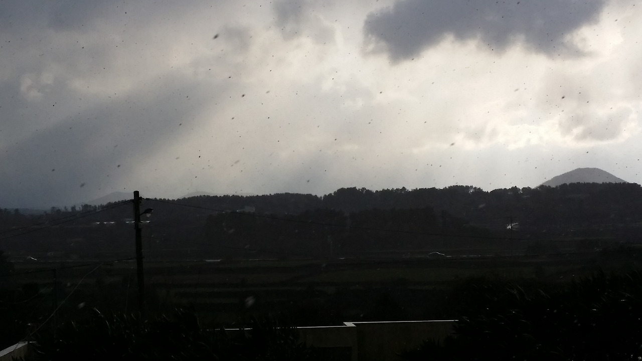 검은색의 구름은 모이는 것만으로 그치지 않느나. 어느새 무언가를 흩뿌리기 시작한다. 눈이 아니다. 비도 아니다. 그냥 얼음 덩어리. 우박이라 해두자